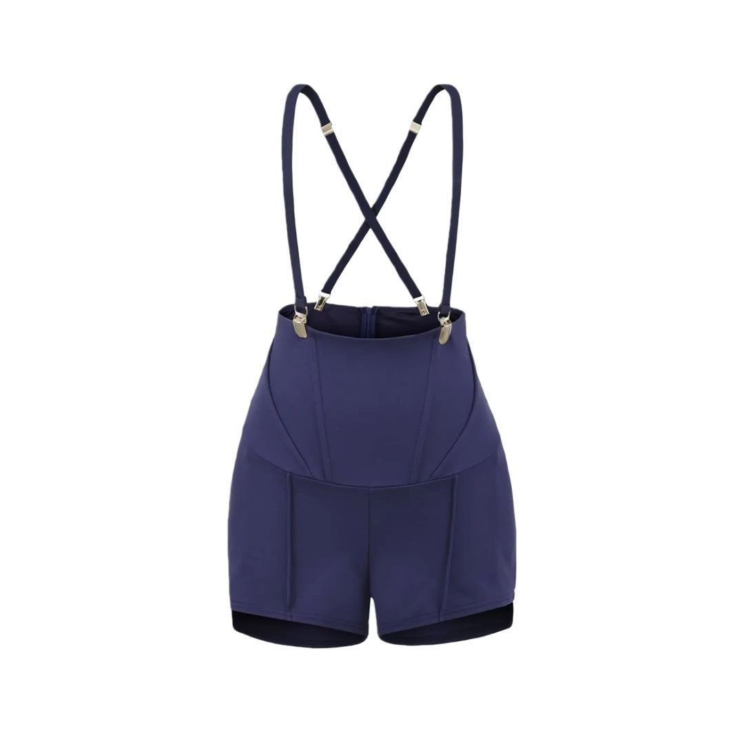 Vintage Solid Color Design Pleated High-Waisted Sexy Bodycon Shorts for Women, Elegant Office Wear with Strap Pants