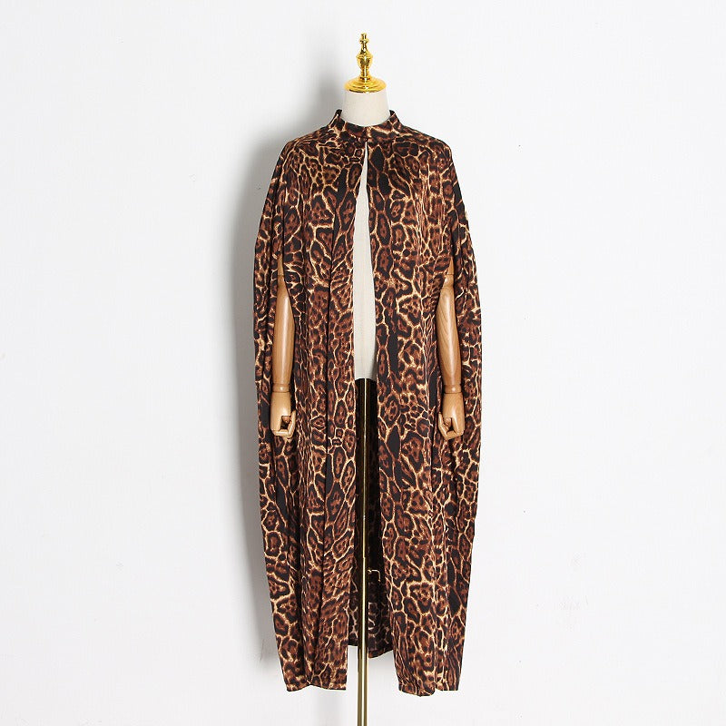 Oversized Leopard Trench For Women Sleeveless Hit Color Windbreaker Female Vintage Fashion Clothing