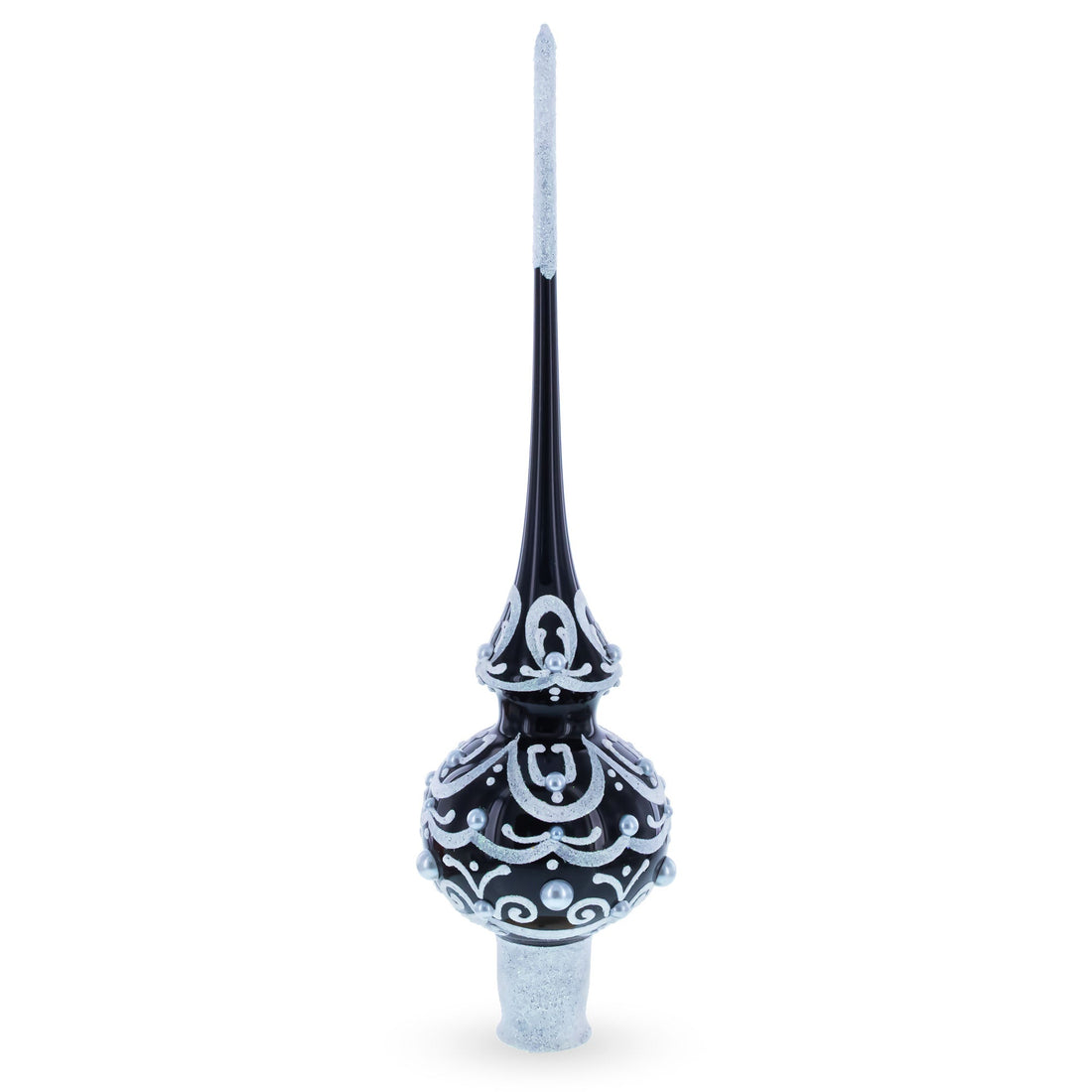 Black & White Scroll Pear Glass Christmas Tree Topper 11 Inches