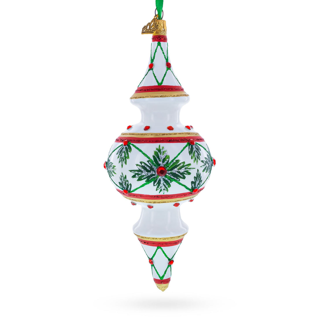 Winter Lattice & Holly Star Jeweled Double-Ended Finial Drop Glass Christmas Ornament