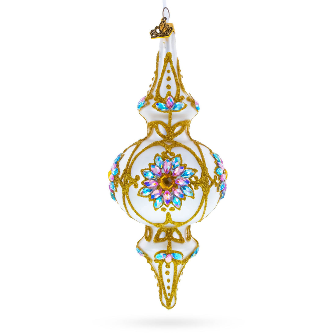Pearl White Baroque Double-Ended Finial Drop Glass Christmas Ornament