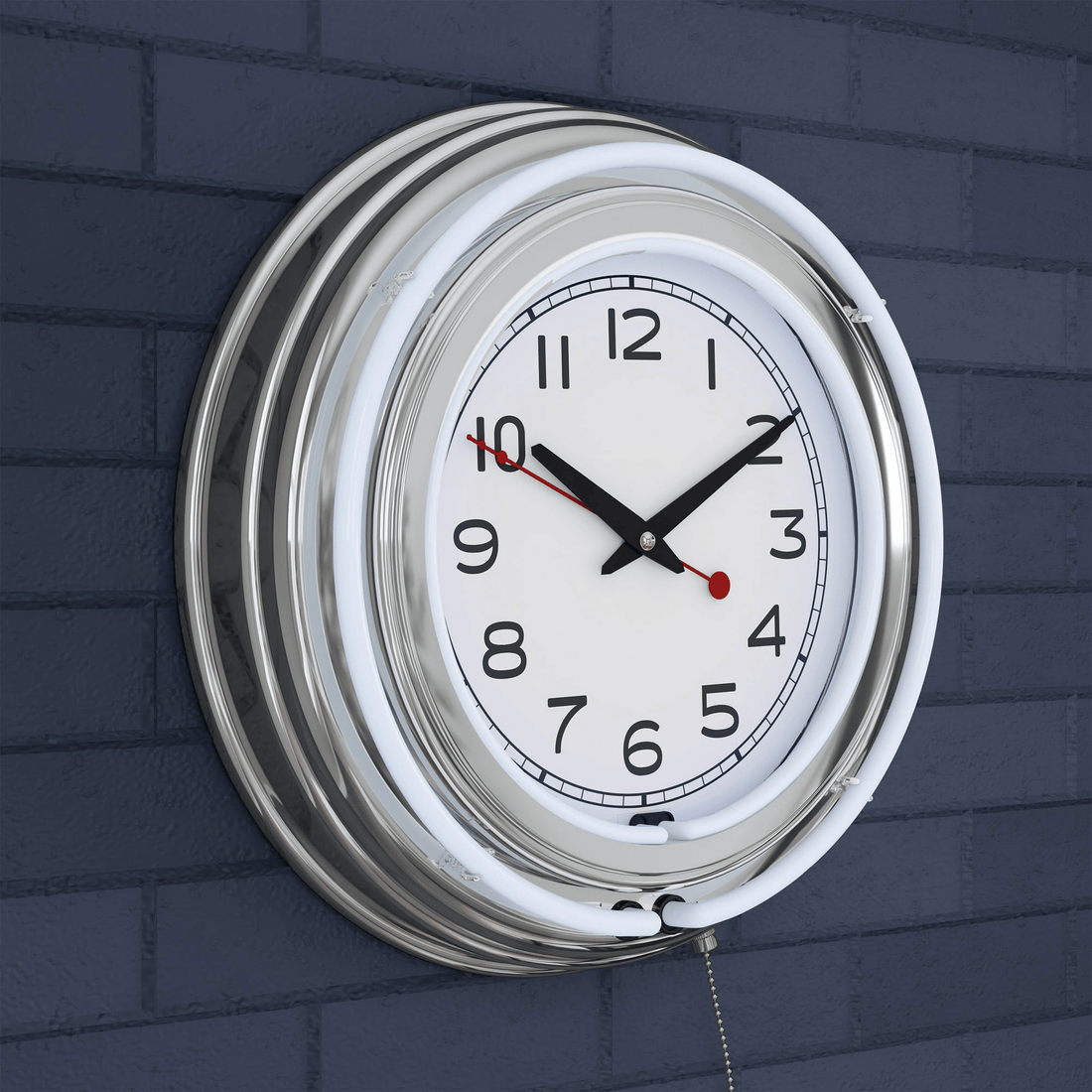 Neon Wall Clock- 14' Round, Double Light Ring, Dual Power, Analog Quartz Timepiece- Retro D??cor for Bar, Garage & Game Room by Lavish Home (White)