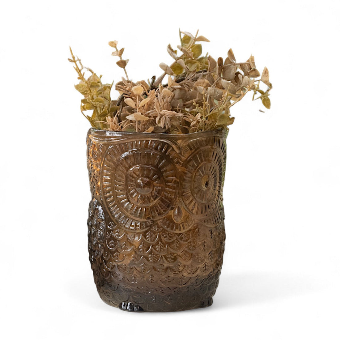 Bring unique texture and character to your home with this brown glass owl vase. Featuring...