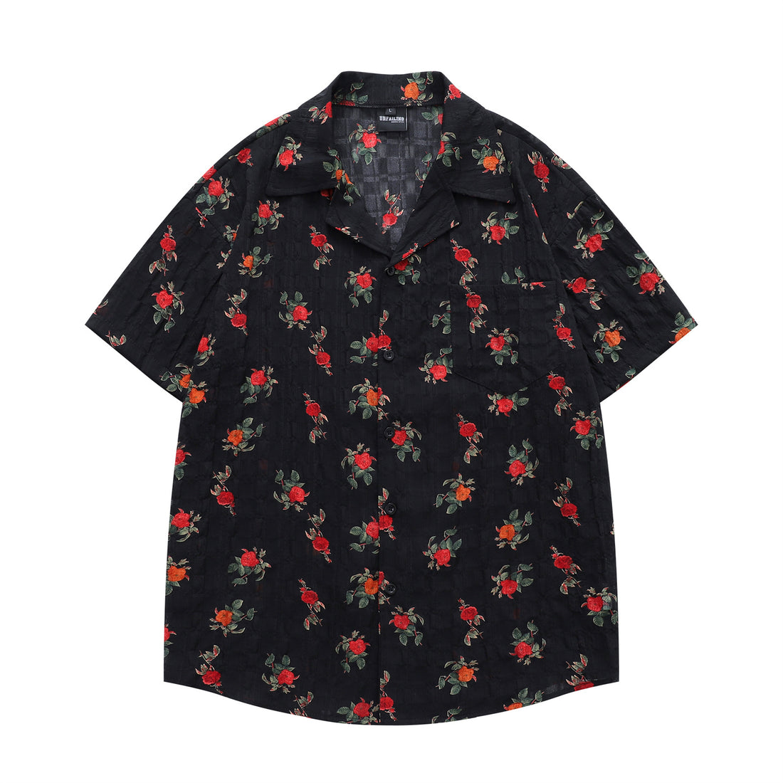 Style Retro Rose Full Print Design Short Sleeve Shirt for Men and Women