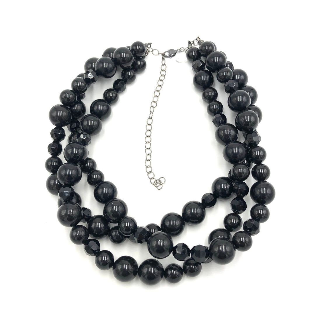 Black beaded necklace featuring 5 strands of lightweight lucite beads in a matte finish. This...