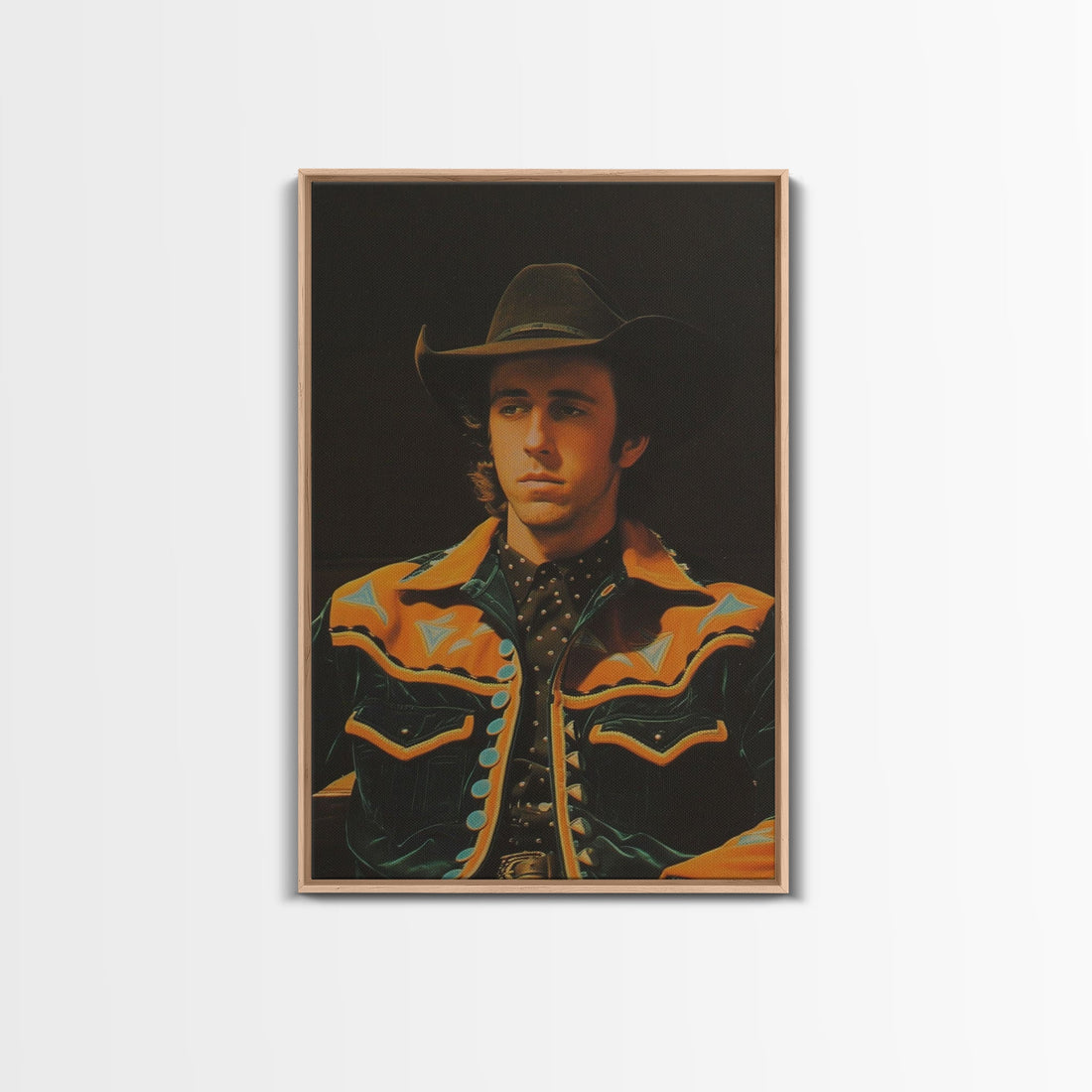 Retro Cowboy Portrait Print - Framed Canvas Wall Art, Rustic Western Decor, Vintage Cowboy Artwork for Living Room, Historical Portrait
