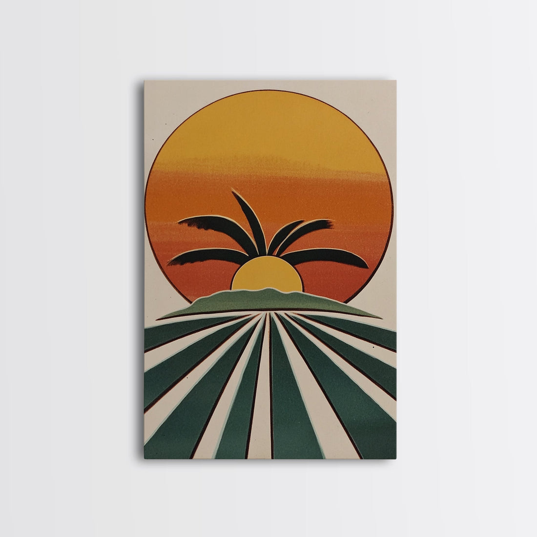 Palm Tree Sunset, Wood Framed Wall Art, Canvas Print, Boho Home Decor, Retro Style Modern Art