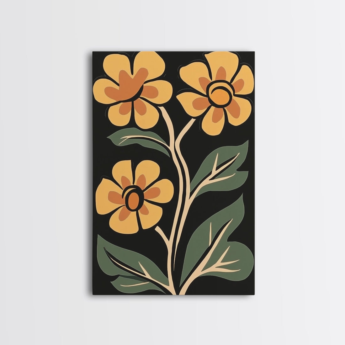 Large Framed Vintage Style Botanical Wall Art Canvas Print - Retro Mid-Century Modern Flower Print - Canvas Wall Art Floral Decor
