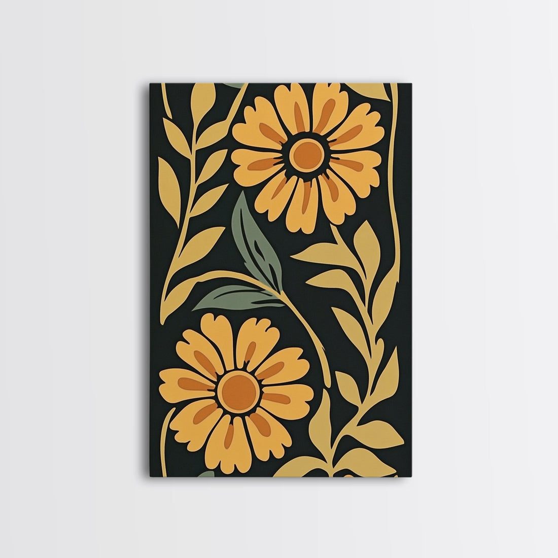 Floral Pattern in Bold Colors - Framed Canvas Print, Midcentury Modern Skinny Art, Tall Wall Art for Living Room or Bedroom Decor