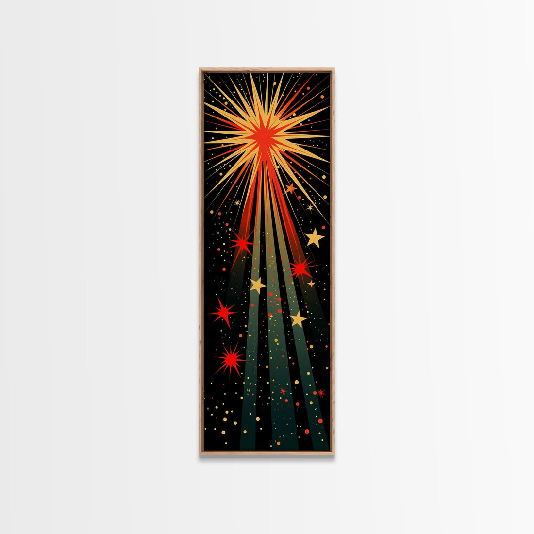 Starburst Explosion on Black Background - Framed Canvas Print, Boho Art, Midcentury Modern, Skinny Art, Tall Art, Bedroom Wall Art, Minimalist Art