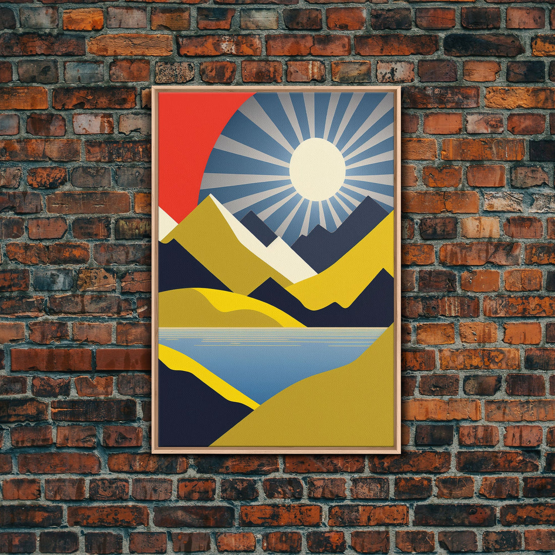 Scandinavian Style Midcentury Wall Art, Framed Canvas Print - Art Deco Minimalist Sunset Retro Style Wall Art Sepia Tones