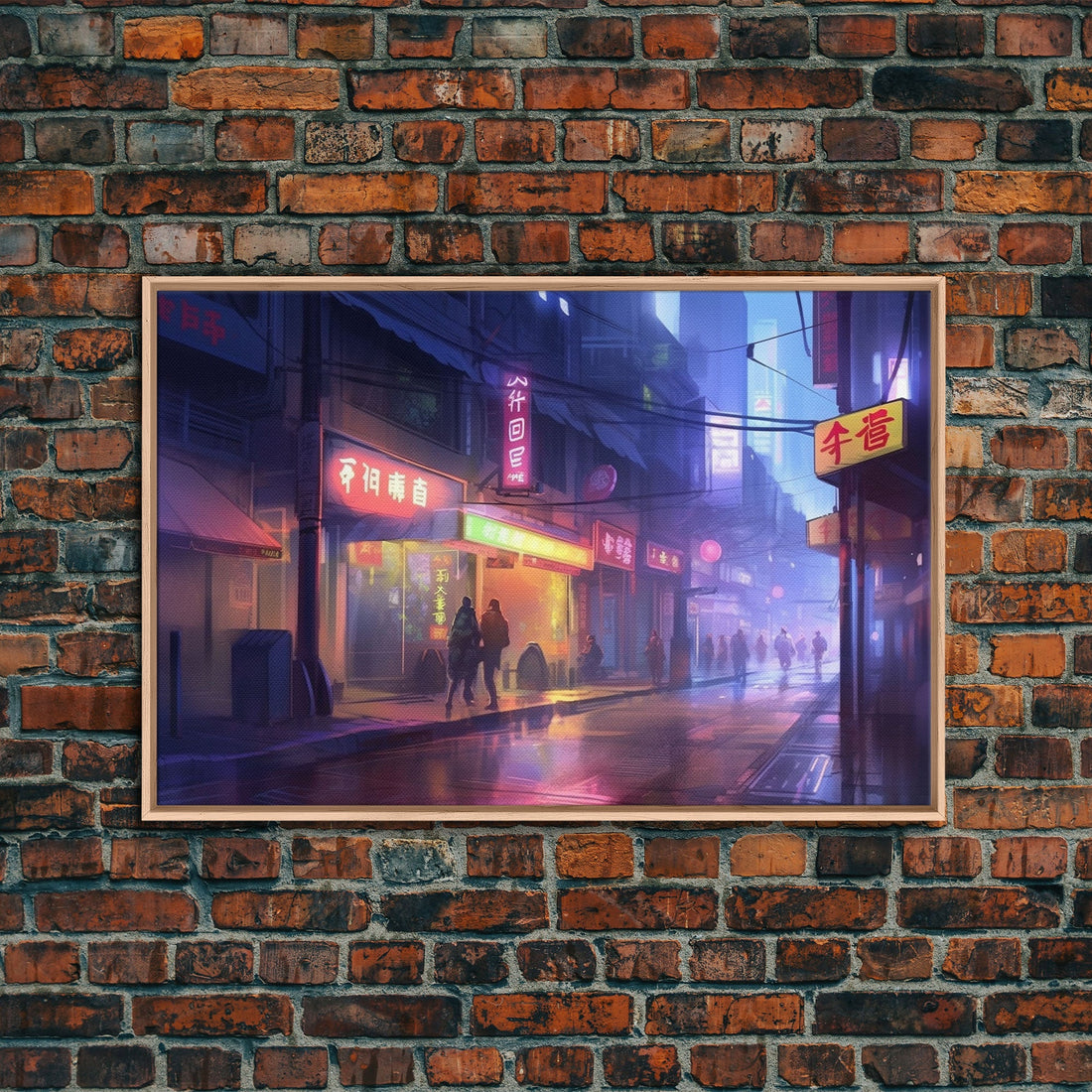 Retro Synthwave Style Tokyo Art, Framed Canvas Print, Unique Wall Art, Vintage Inspired Tokyo Night Life Art
