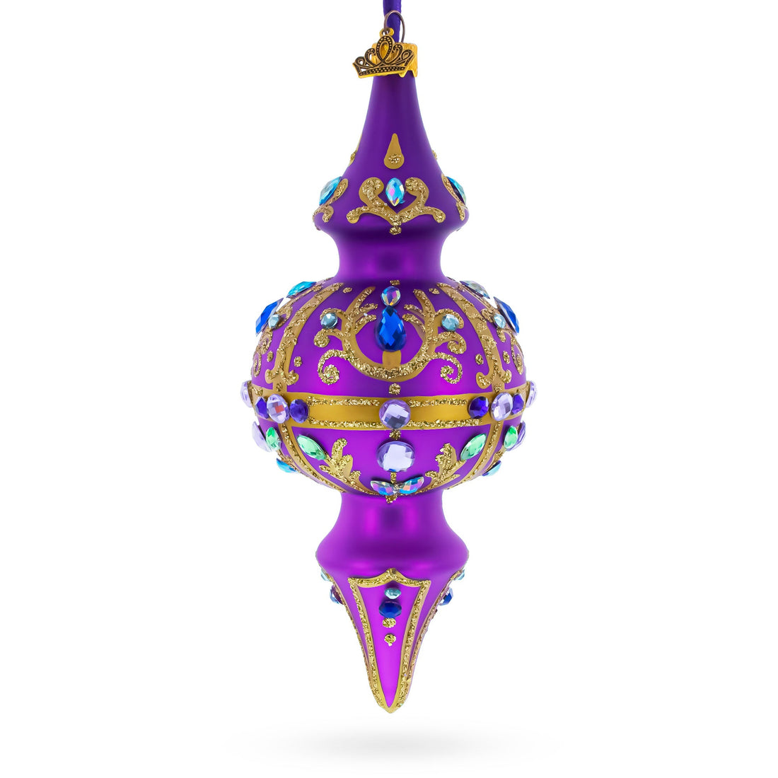 Jeweled-Accent Purple Rhombus Finial Glass Christmas Ornament