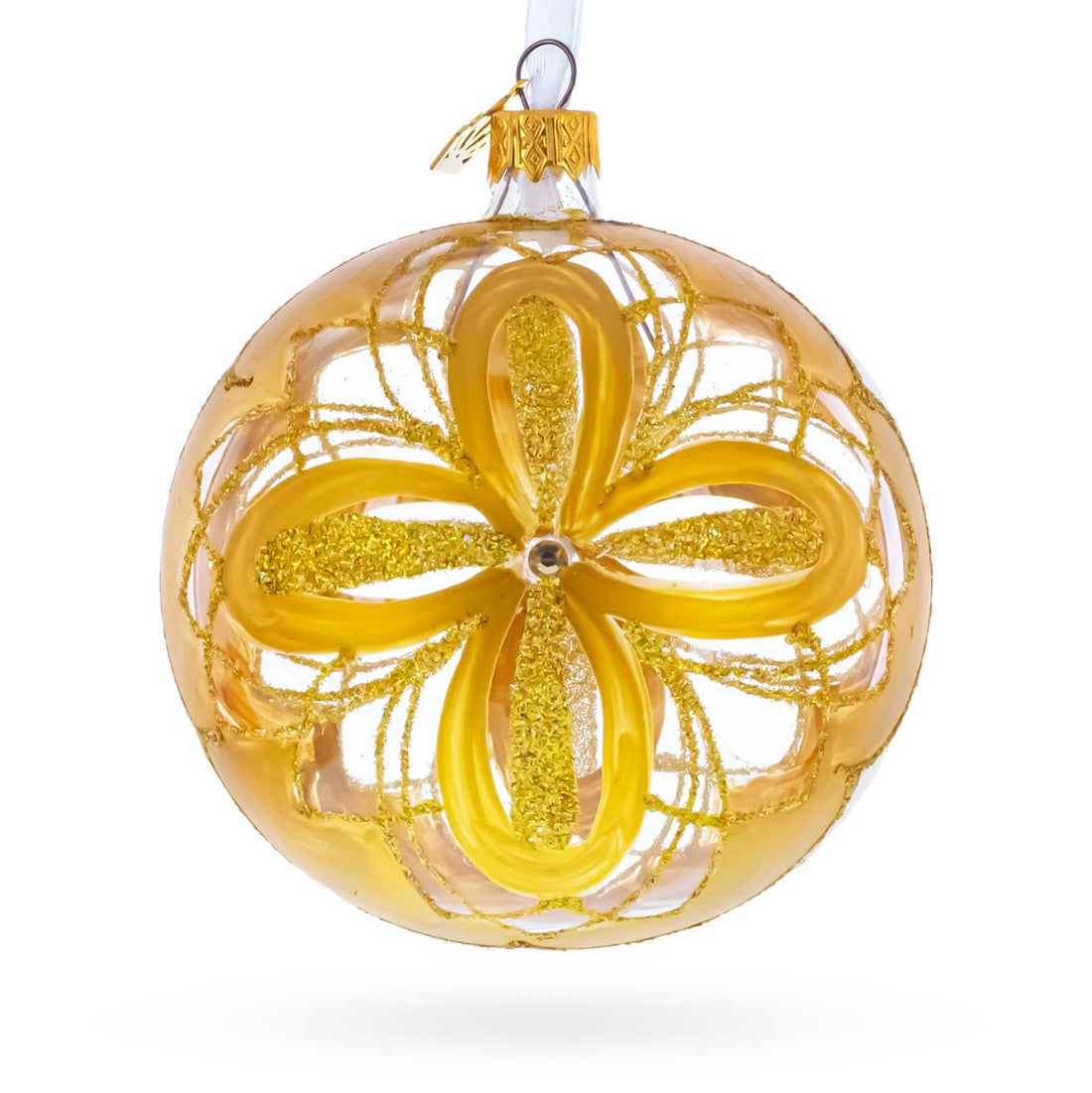 Radiant Gold Starburst Pattern Glass Ball Christmas Ornament 4 Inches
