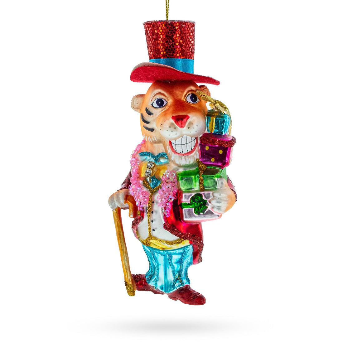 Dapper Tiger Gentleman Glass Christmas Ornament