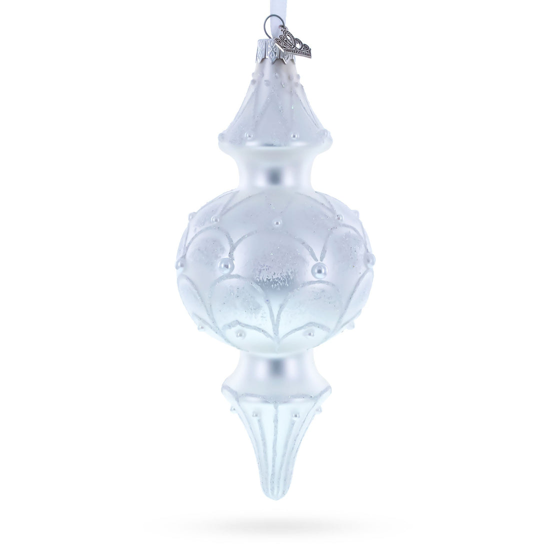 Snowy Pearl Double-Ended Finial Drop Glass Christmas Ornament