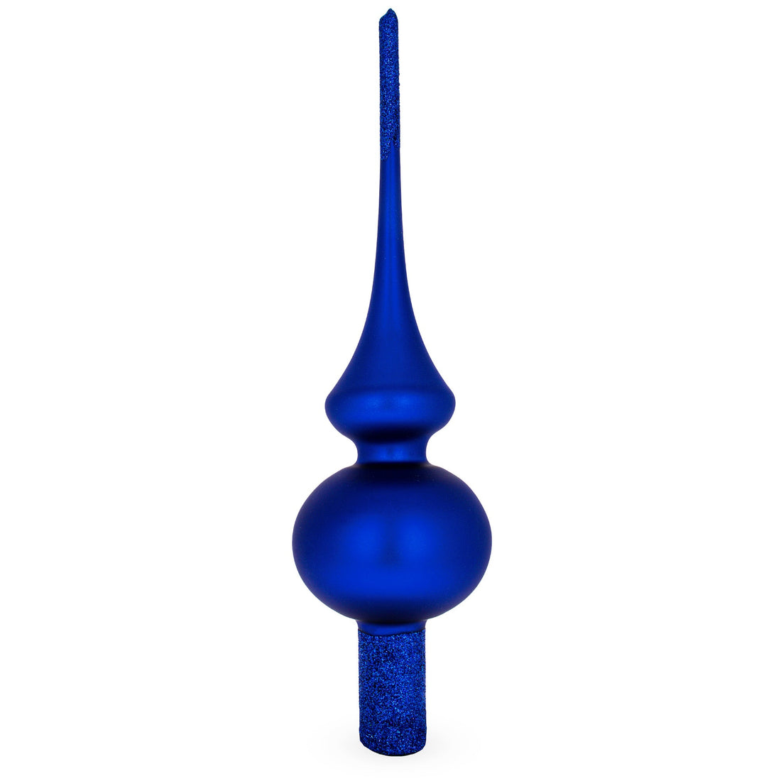 Matte Blue with Sparkling Top Glass Christmas Tree Topper 11 Inches