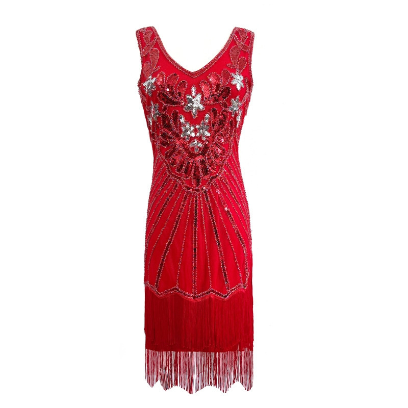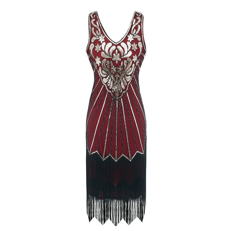 1920s Retro V-Neck Sequin Gatsby Luxury Sequin Fringe Dress Party Ball Cocktail Dress