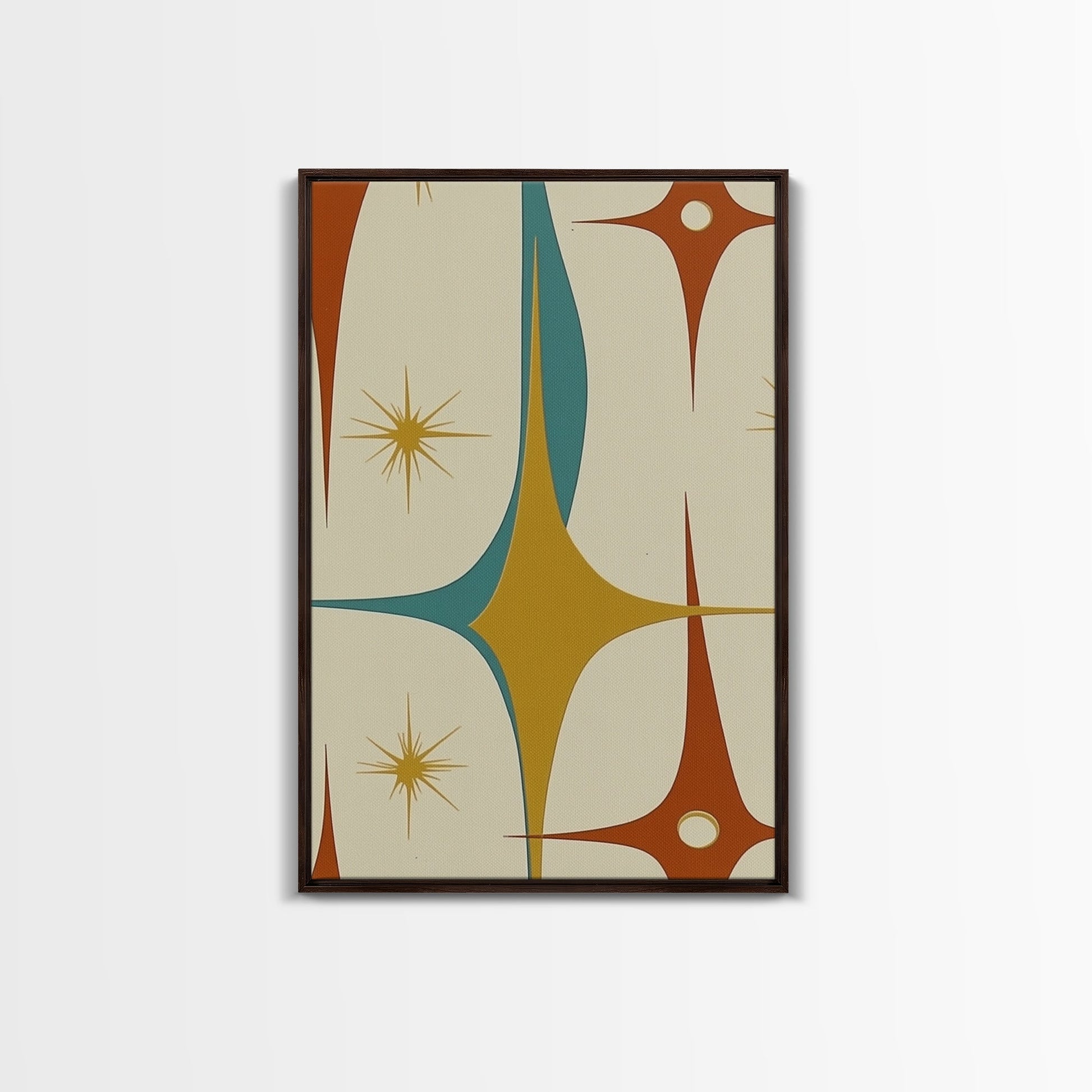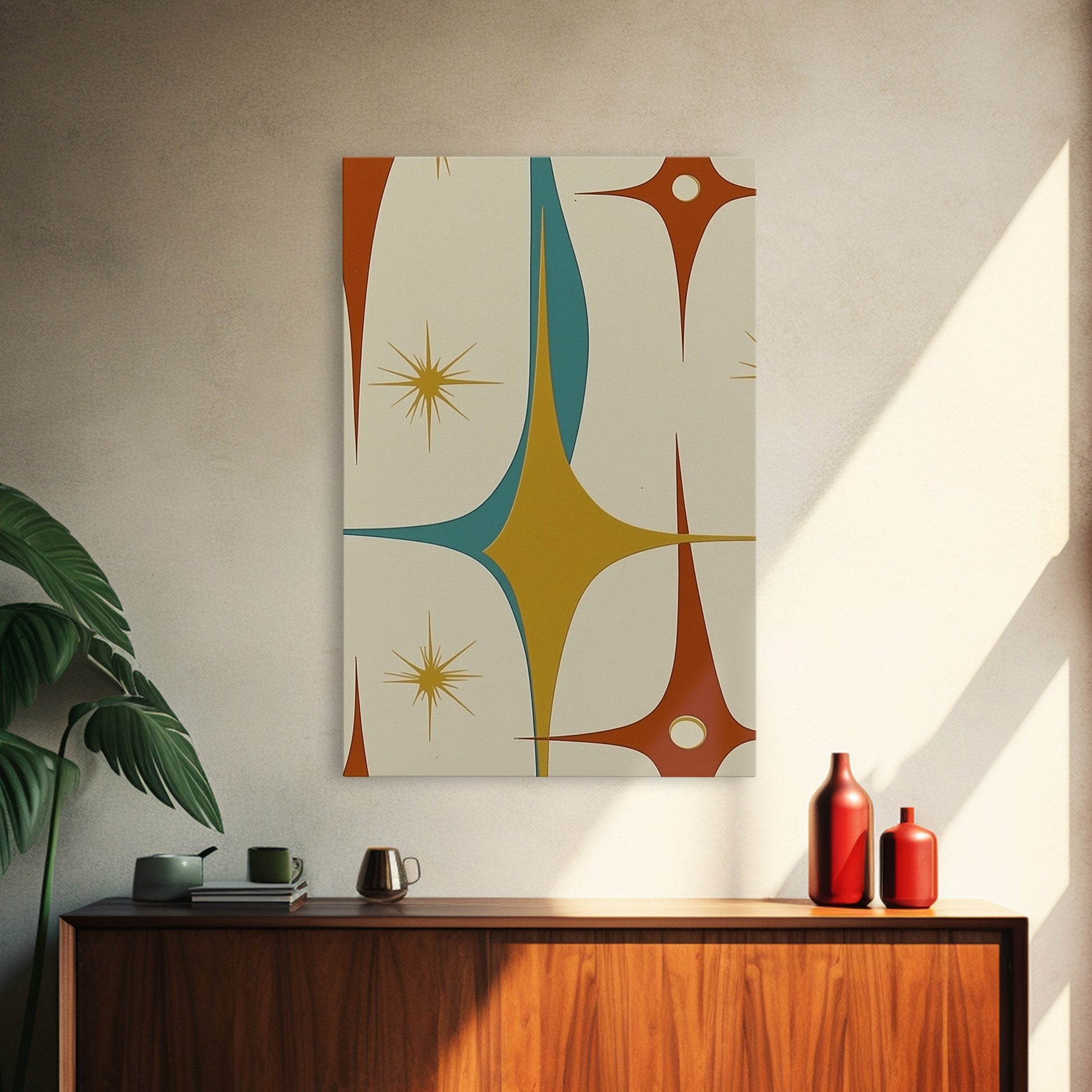 1950s Style Retro Starburst, Pastel Colors, Canvas Print, MCM Wall Art Home Decor