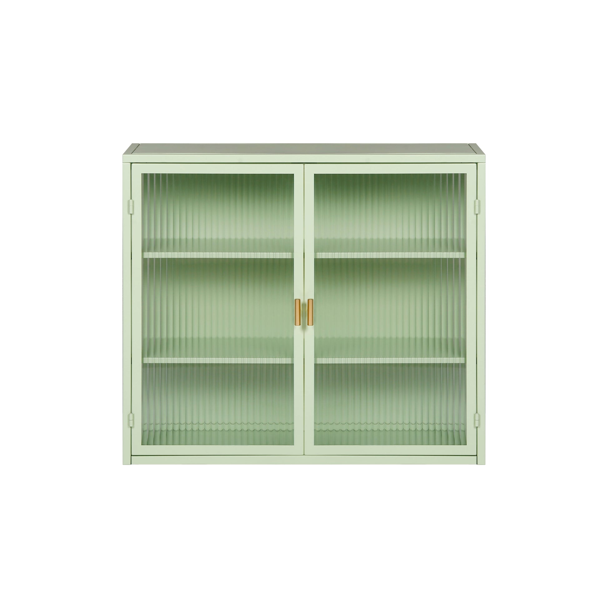 27.56"Glass Doors Modern Two-door Wall Cabinet with Featuring Three-tier Storage Mint Green