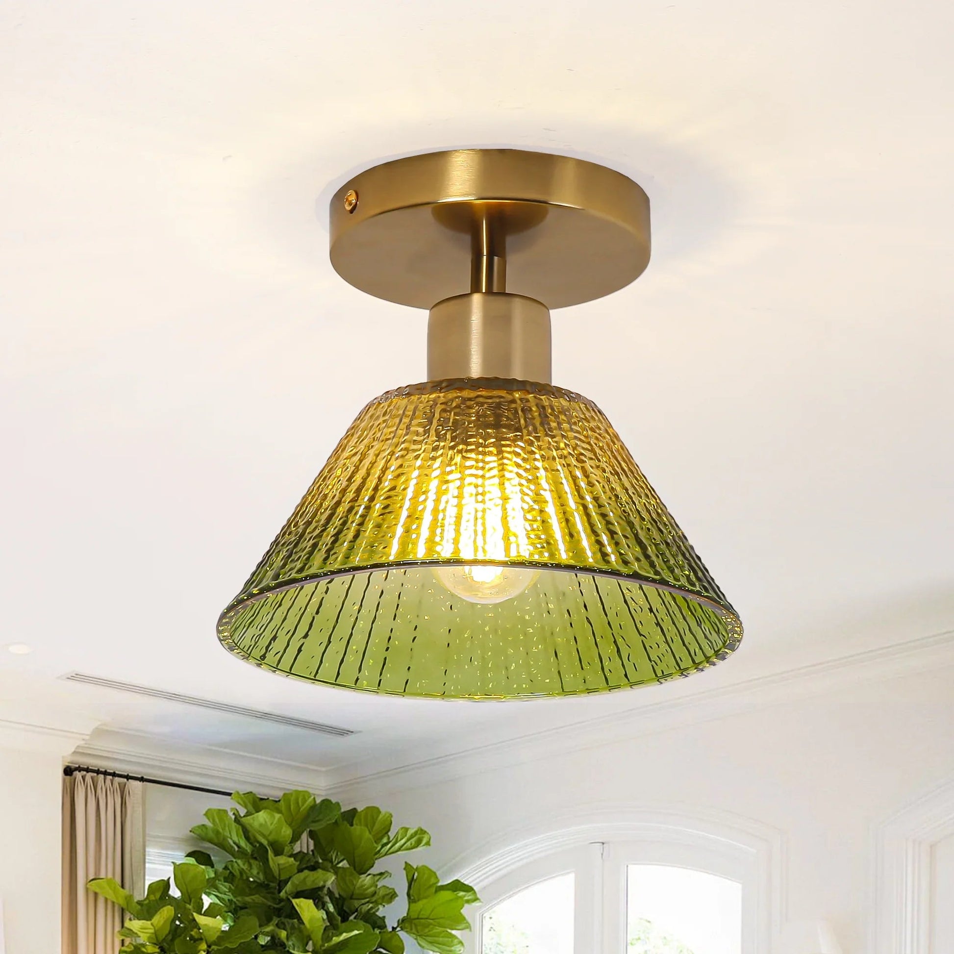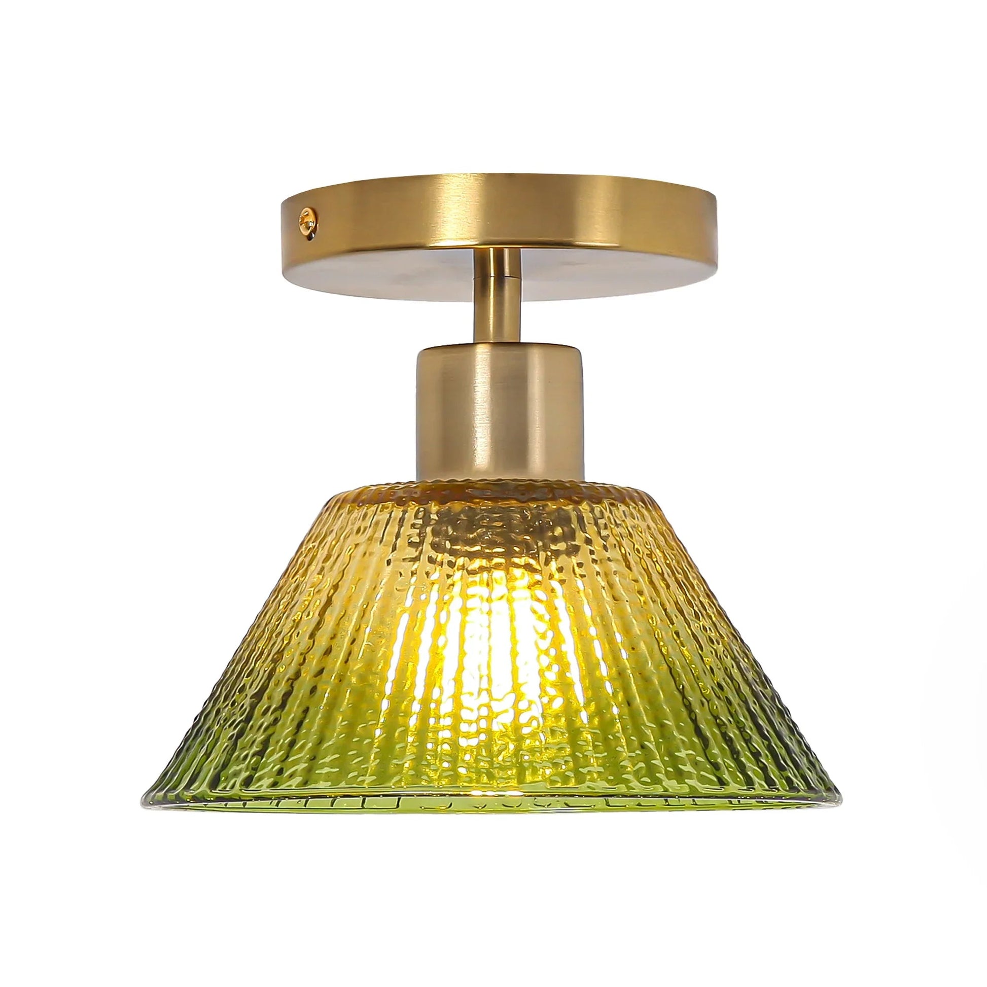 【Modern Design】: Sleek modern style with a bowl-shaped yellow-green gradient color glass shade, semi-Flush Mount suitable for rooms with standard ceilings.