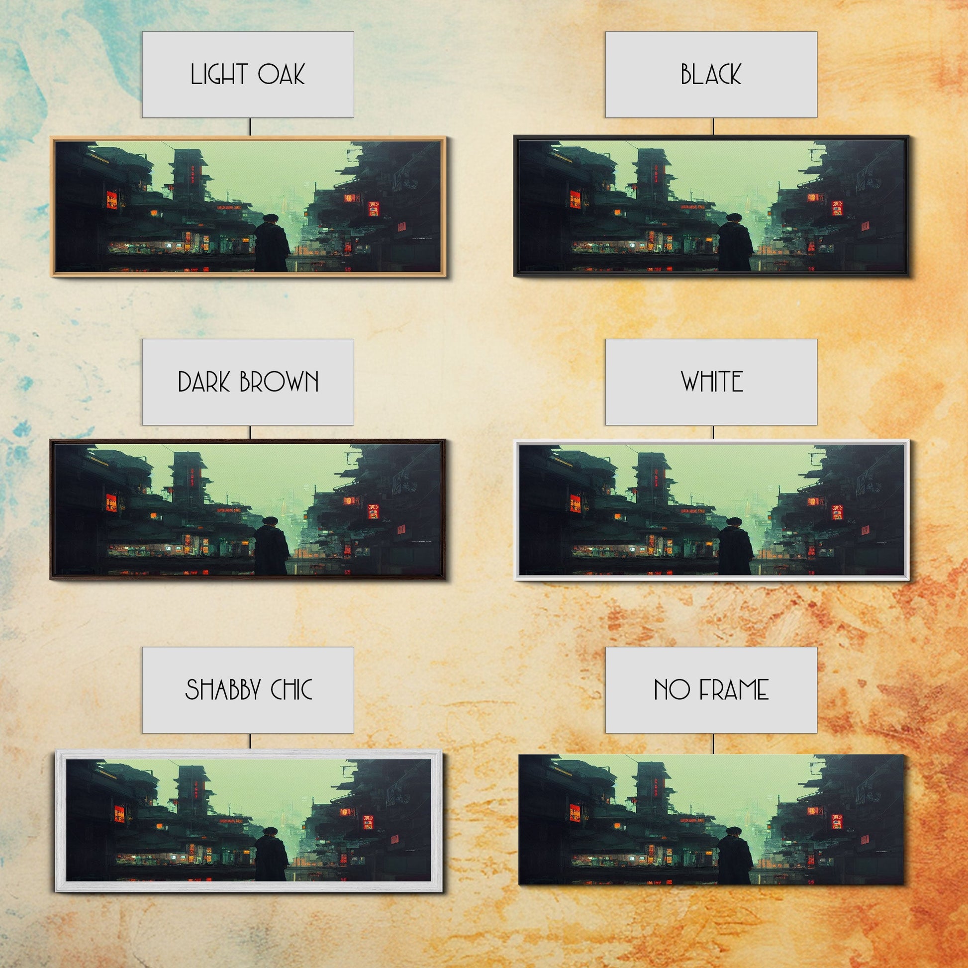 80s style Cyberpunk Japanese City, Retro Punk Tokyo, Framed Canvas Print, Framed Wall Art, Large Panoramic Wall Decor