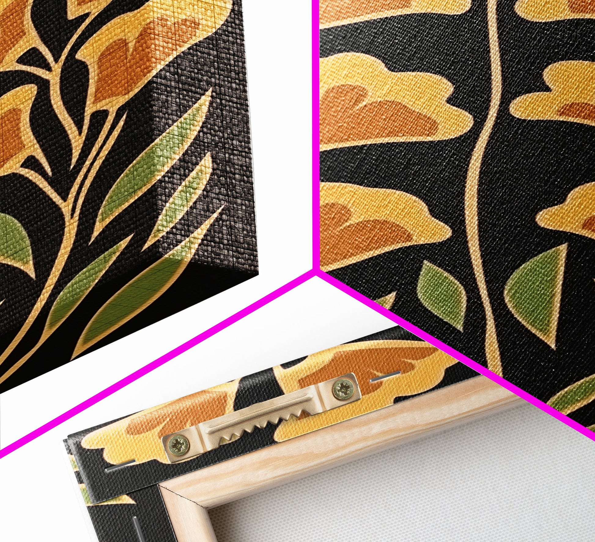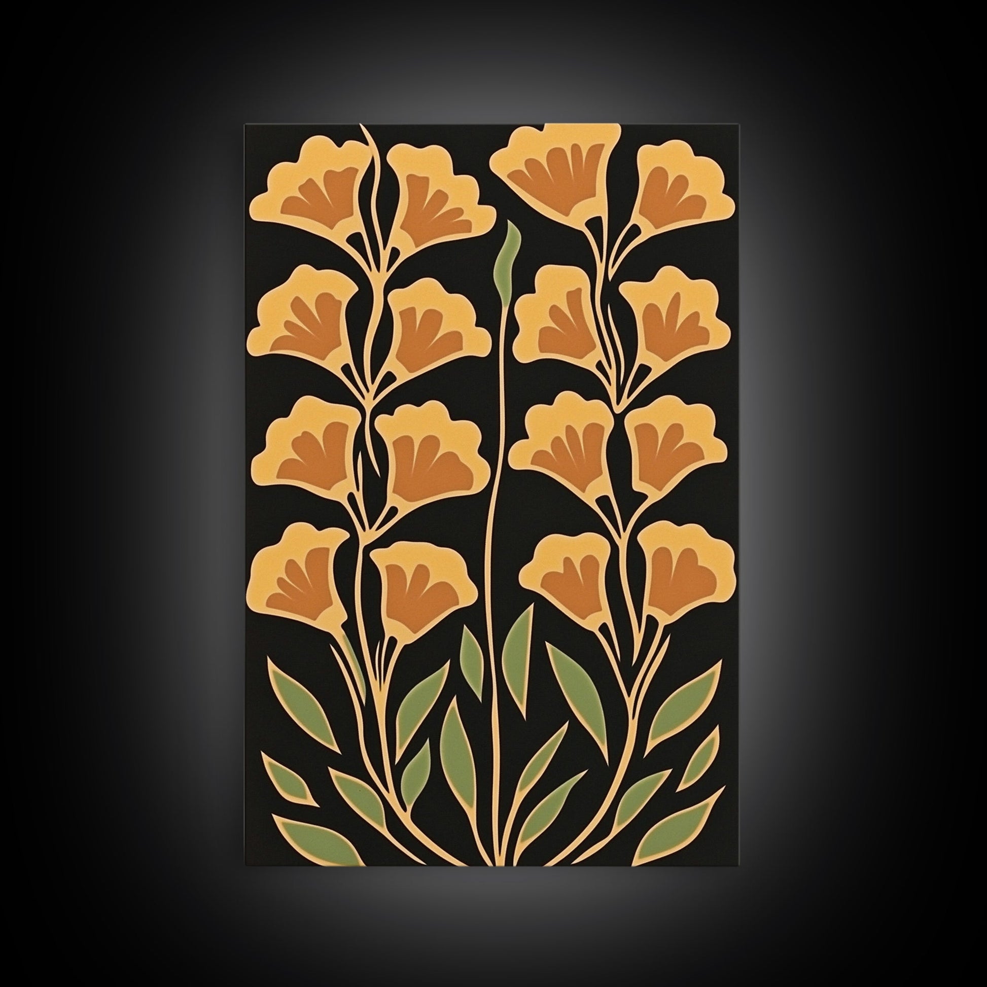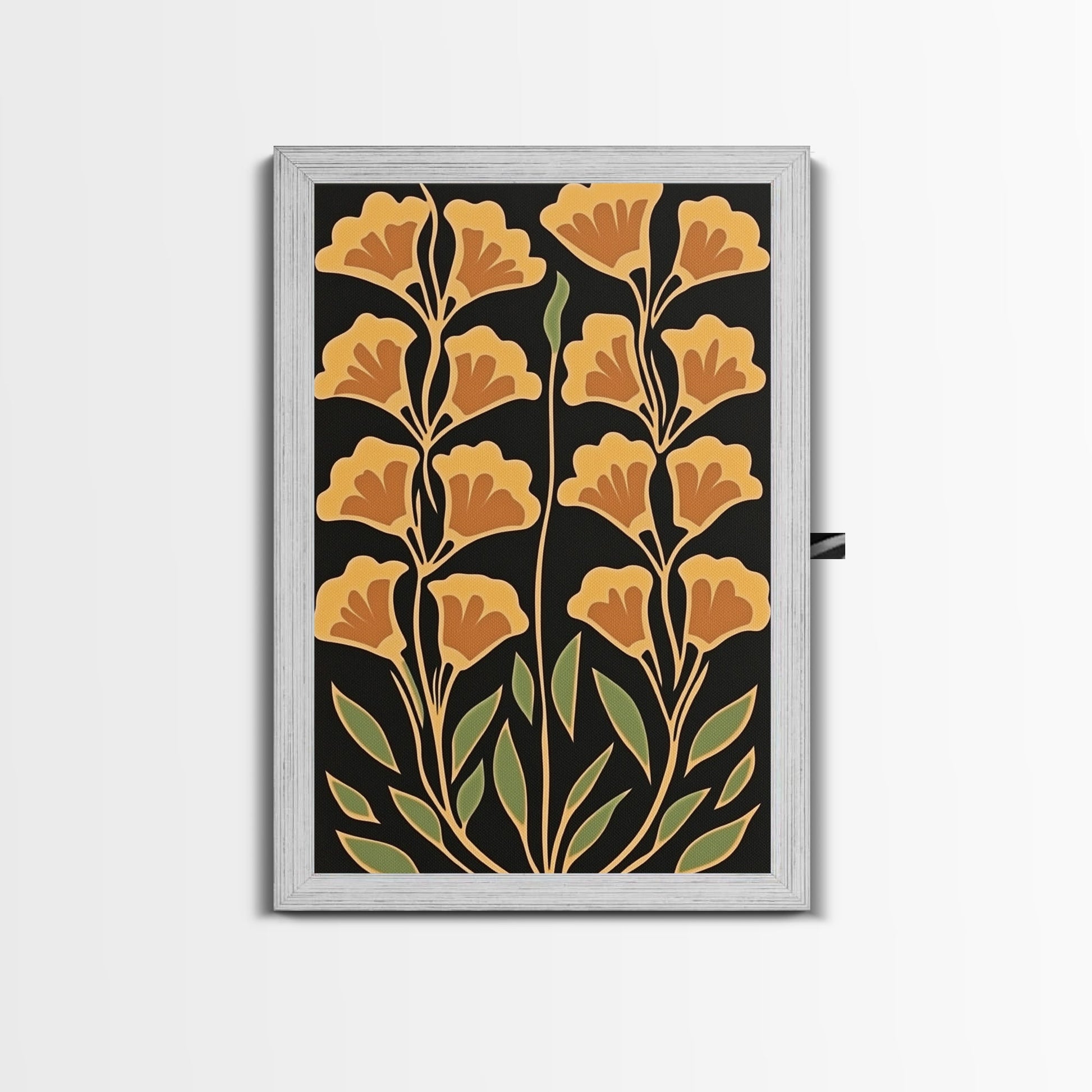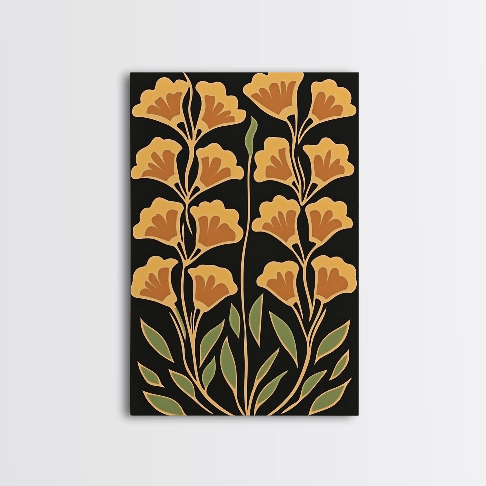 Abstract Flower Retro Painting Canvas Print, Large Wall Art, Original Minimalist Yellow Floral Art, Custom Painting Boho Wall Decor Living Room