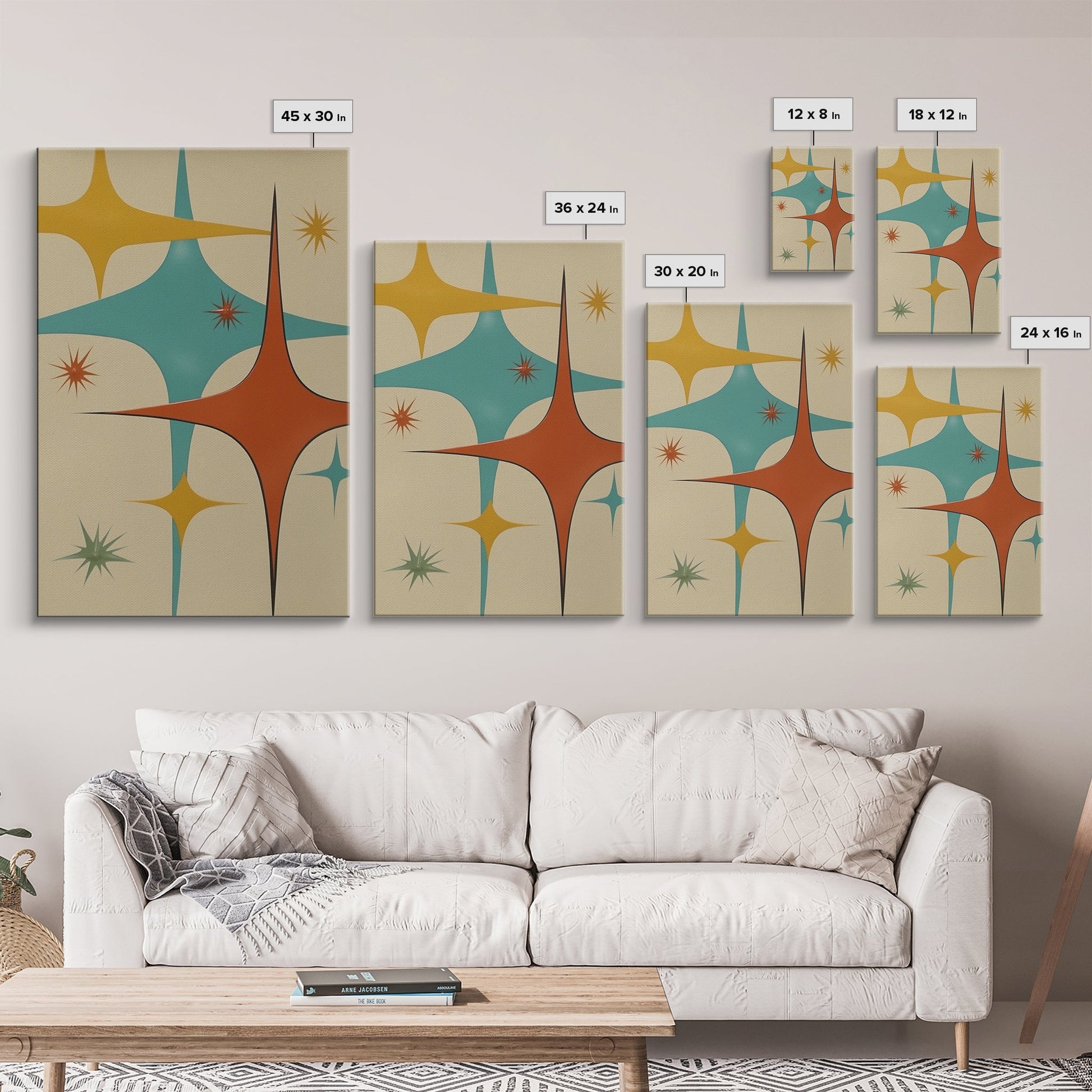 Art Deco Star Burst Canvas Print Wall Art, Retro 50s Style, Starburst, Mid-Century Modern Wall Art