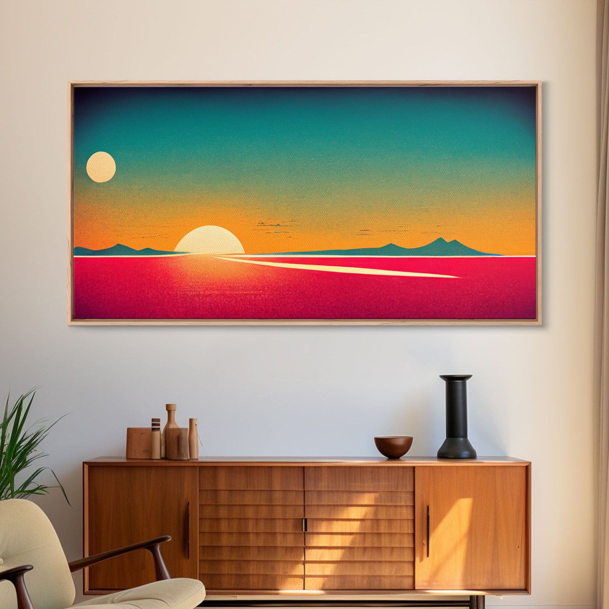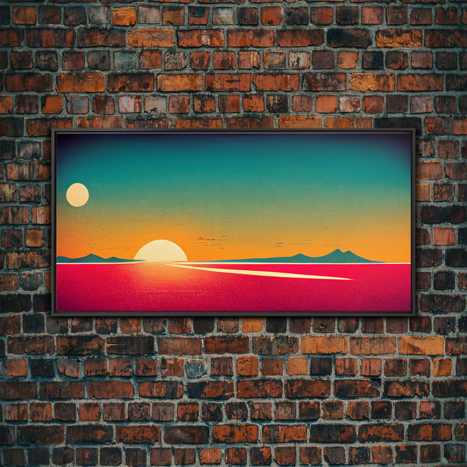 Art Deco Wall Decor, Wall Art, Framed Canvas Print, Retro Style Sunset Art, Scifi Wall Decor, 2 Suns