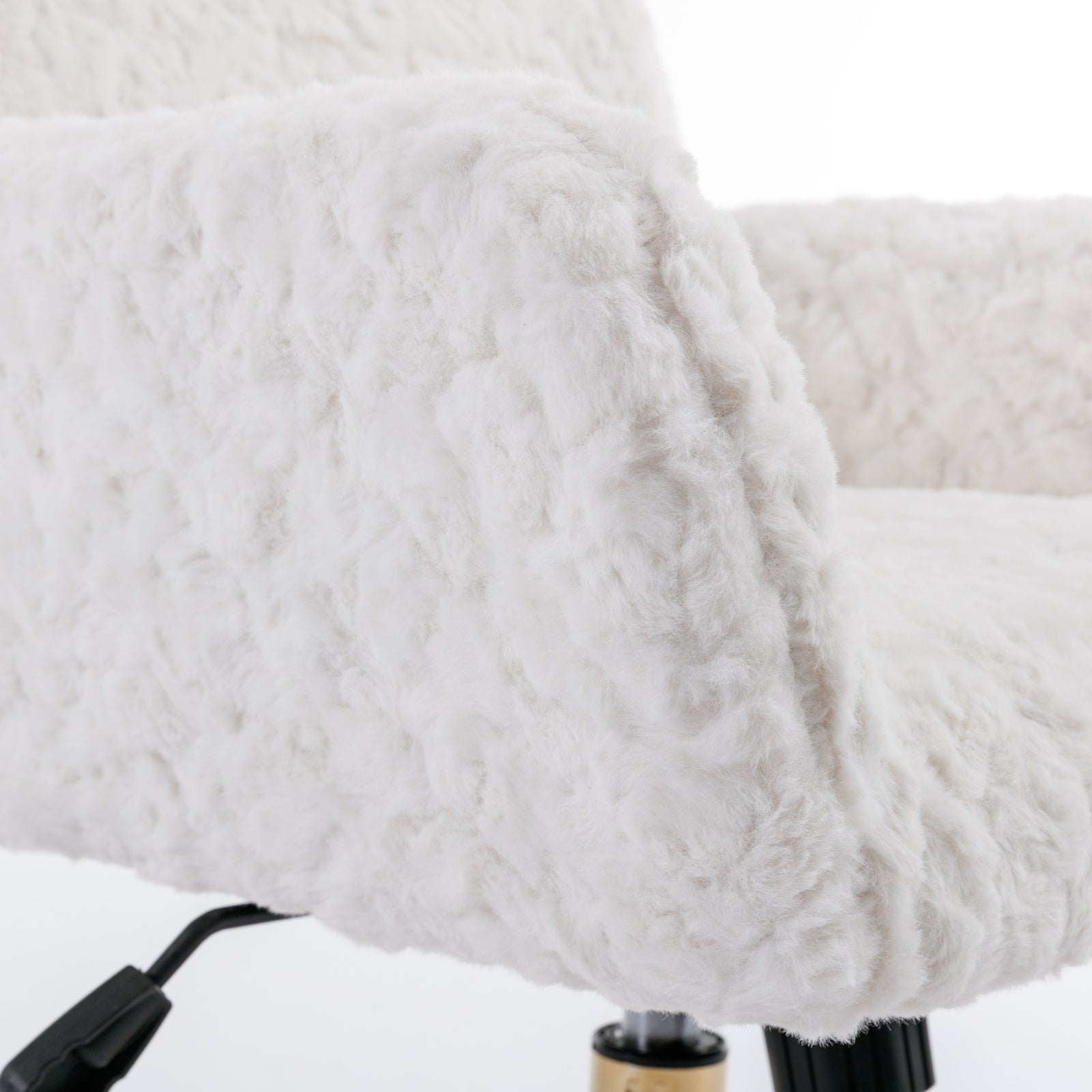 Artificial rabbit hair gold metal base home office chair adjustable chair rotating office chair, dressing chair (beige)