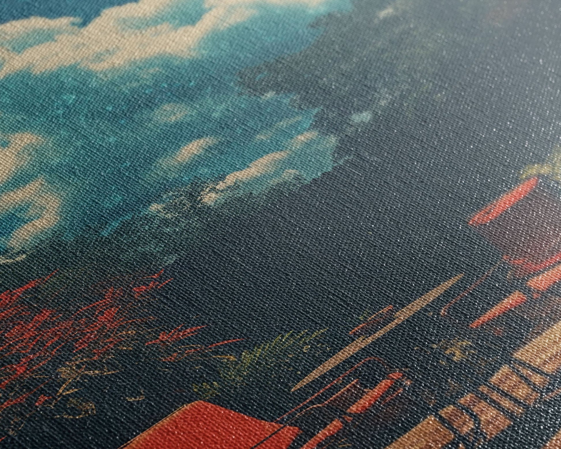Most of our canvases are made in the USA, with the exception of canvases ordered with the light oak unstained frames, and any large canvases (24x48, 30x60, 16x48 and 20x60) ordered WITH a frame. These are temporarily made in and shipped from Europe, while we try to find a more consistent supplier in the USA.