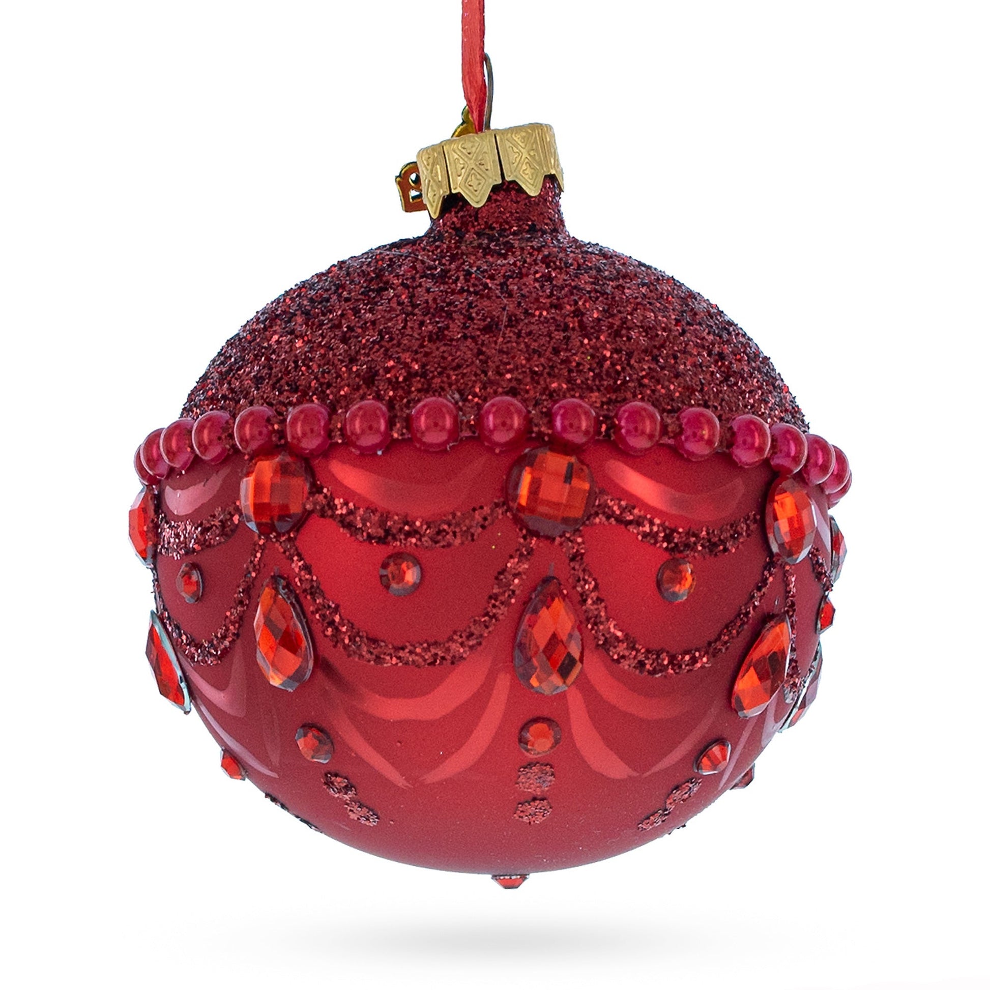Bejeweled Chandelier Design on Red Glass Ball Christmas Ornament 3.25 Inches