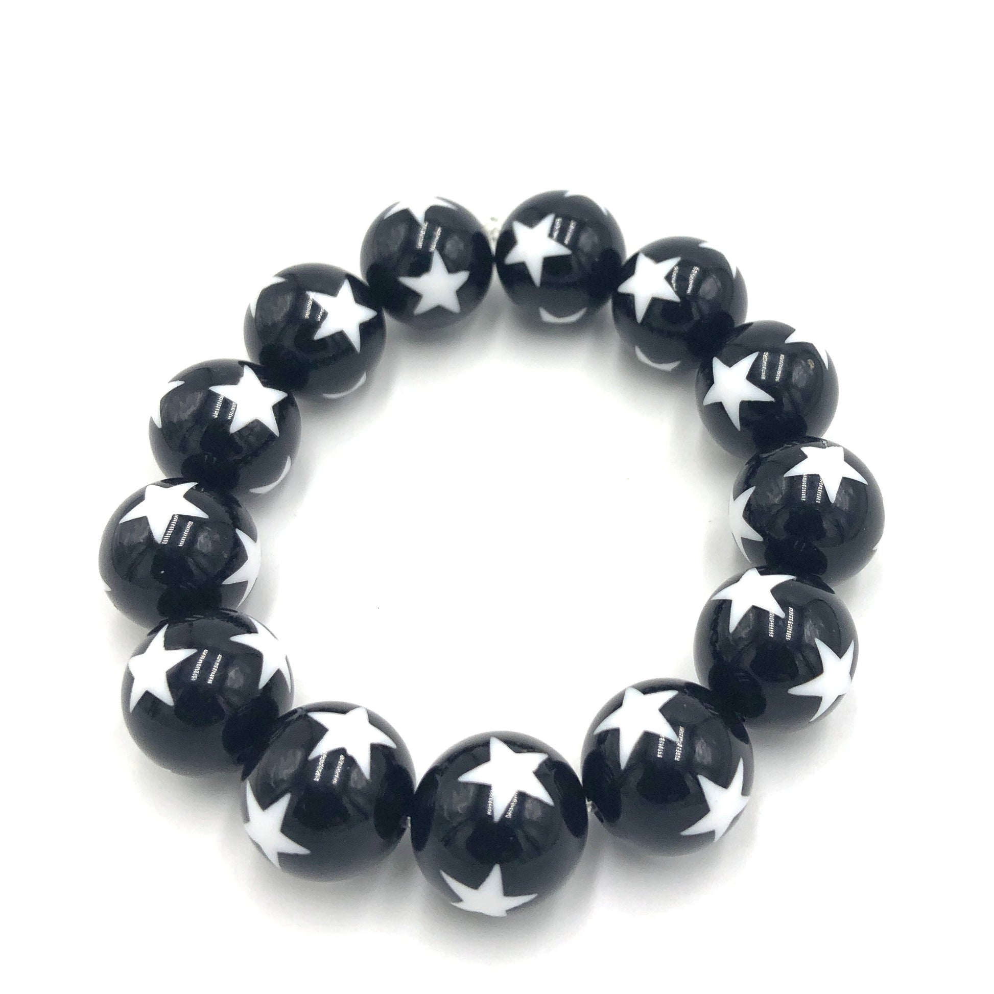 Black & white star studded lucite beads from the 80's. Or just show off your inner-super-star! A great wearable size & color to add to your collection.