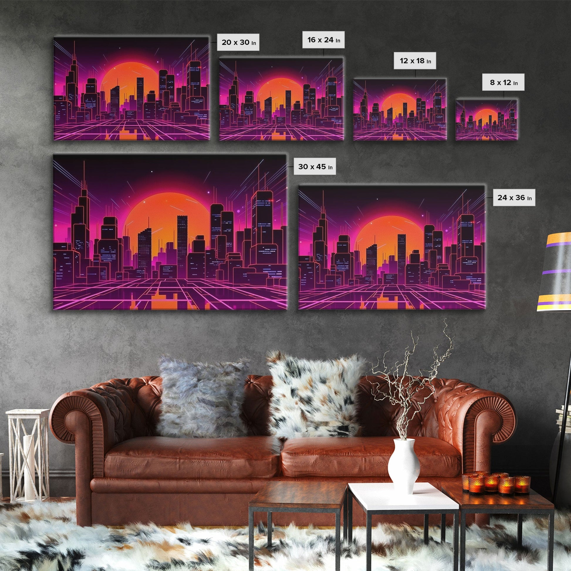 City Wall Art | Framed Canvas Print | Living room art | Lines | Retro | Wonderful art | Landscape | Outrun Style | Futuristic | Synthwave