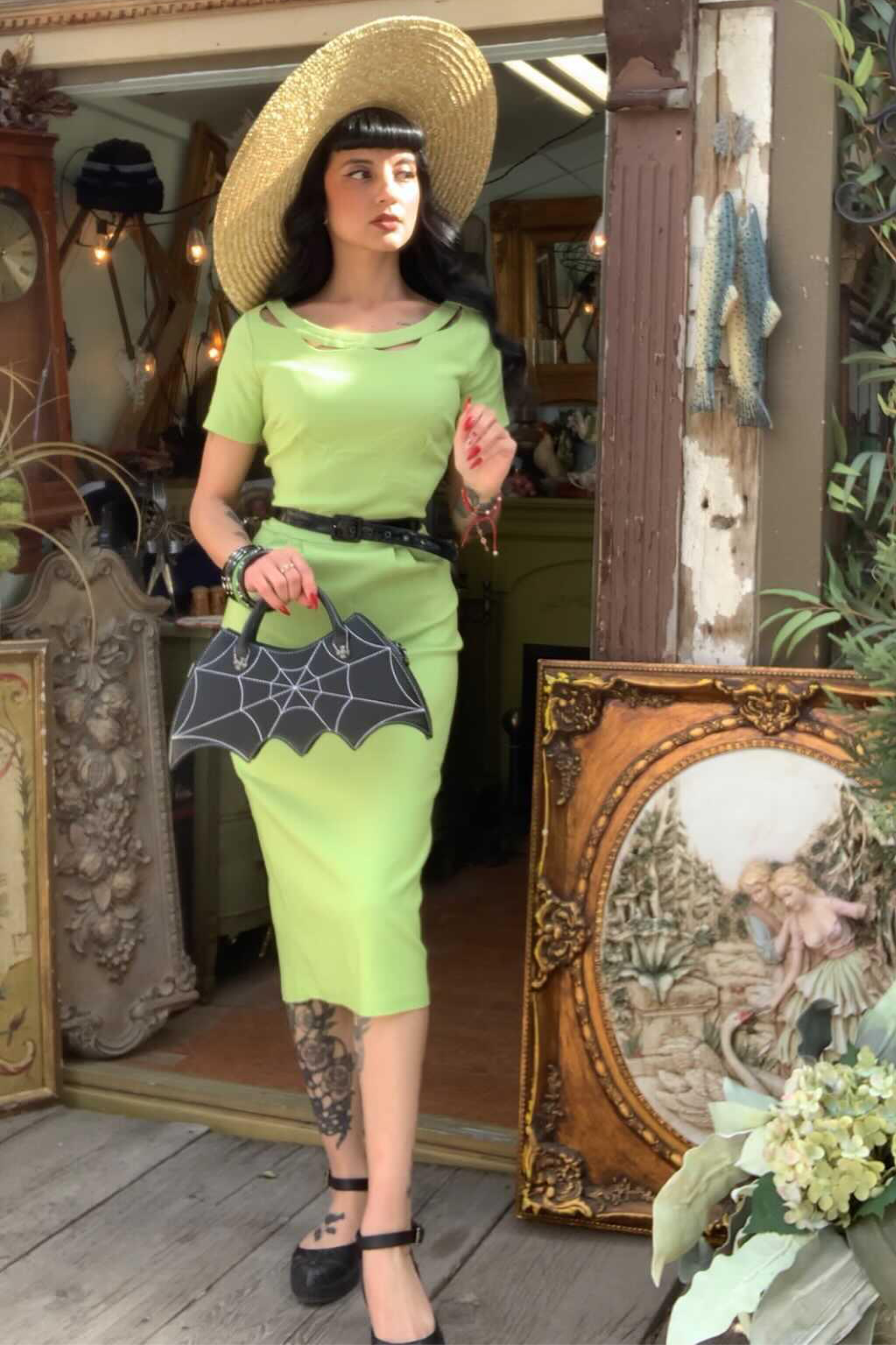 Connie in Titanite is the everything dress! Slip into this pencil dress in bright springtime green and feel like you slipped back in time.