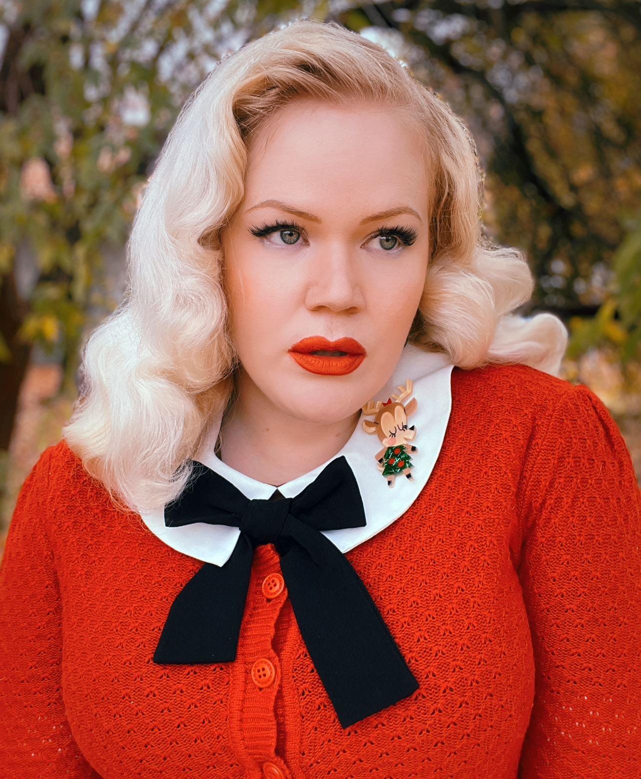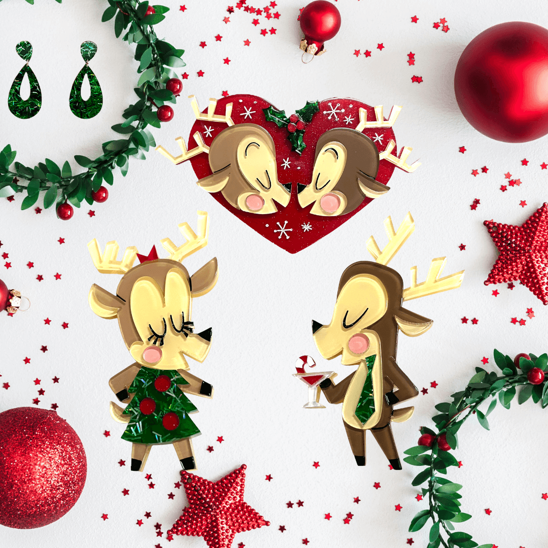 Each Lipstick & Chrome piece is handcrafted with laser cut acrylic resin and hand painted. You may find slight variations in the coloring and resin pattern from piece to piece. Our brooches are meant to remind you of the charm and personality of vintage Bakelite, Celluloid or Lucite jewelry. We hope you love them!