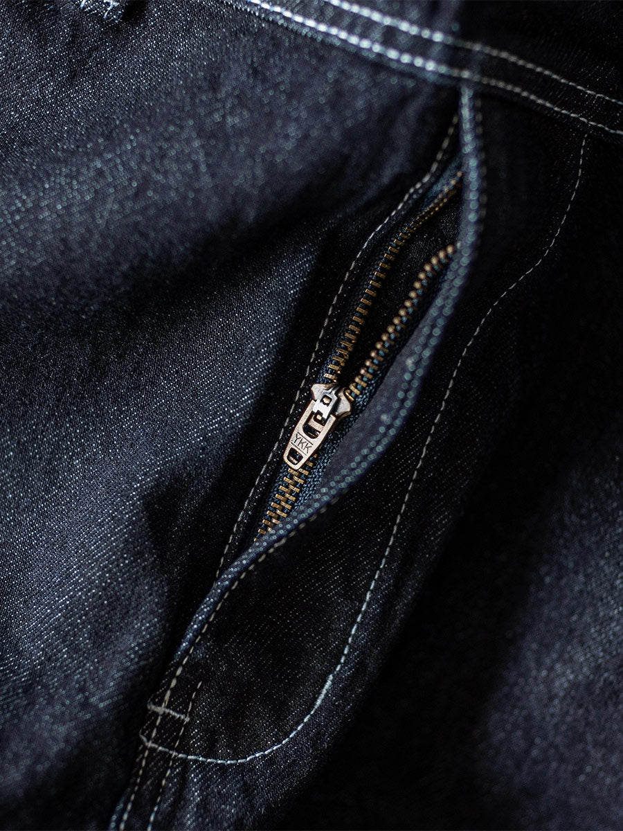 The overall is equipped with multiple work-inspired pockets, including a large bib pocket on the chest, along with the standard hand and back pockets. These details provide plenty of space for carrying essentials while adding to its authentic, utilitarian aesthetic.