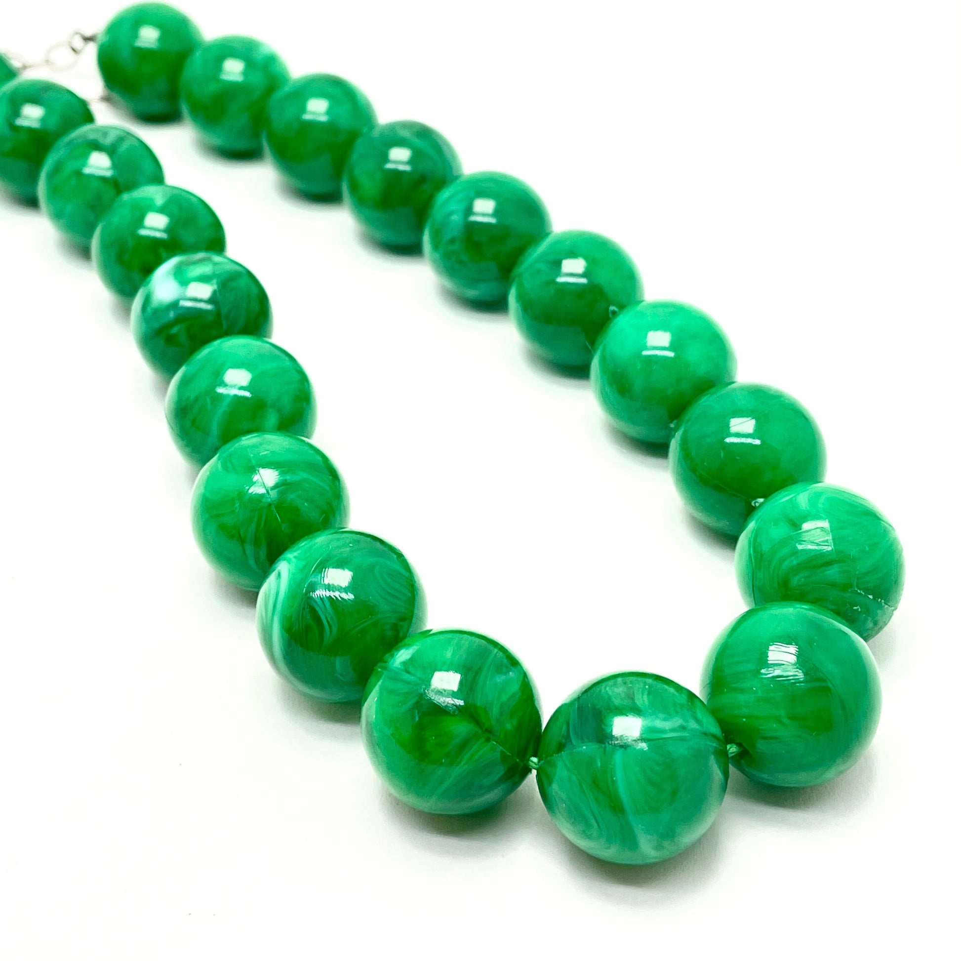 Emerald Green Marbled Lucite Bead Marco Necklace