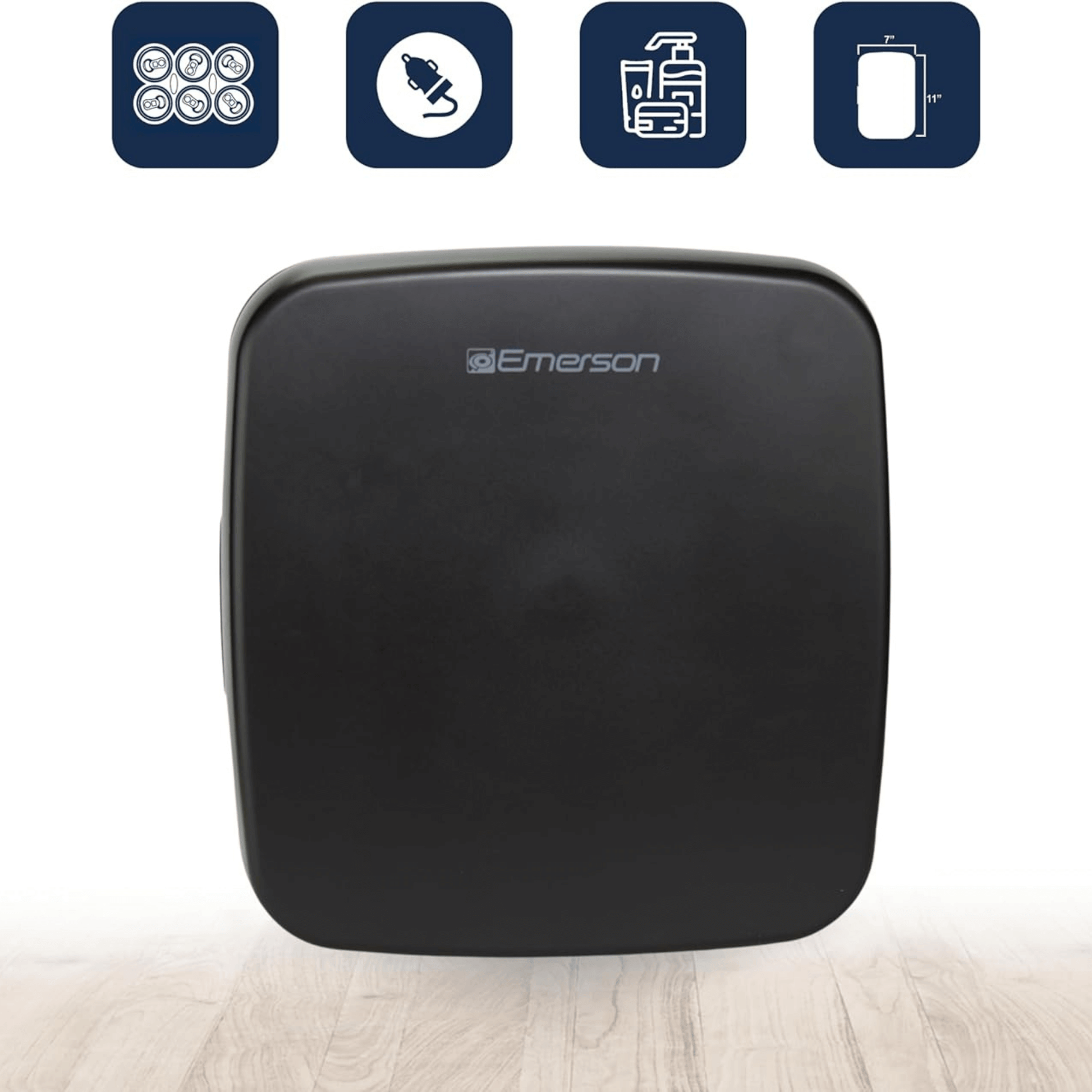 Emerson's 9-liter mini fridge is the perfect solution for storing up to 12 cans (12 oz) of snacks and beverages. It features a thermoelectric cooling system that operates quietly and cools to 28-30 degrees F below the ambient temperature. The fridge is equipped with a locking latch mechanism, and a space-saving design, and it comes with an AC/DC power adapter. Get yours today and enjoy chilled drinks and snacks anytime, anywhere! The compact size of the mini fridge allows it to fit virtually anywhere, making it a convenient addition to any room.
