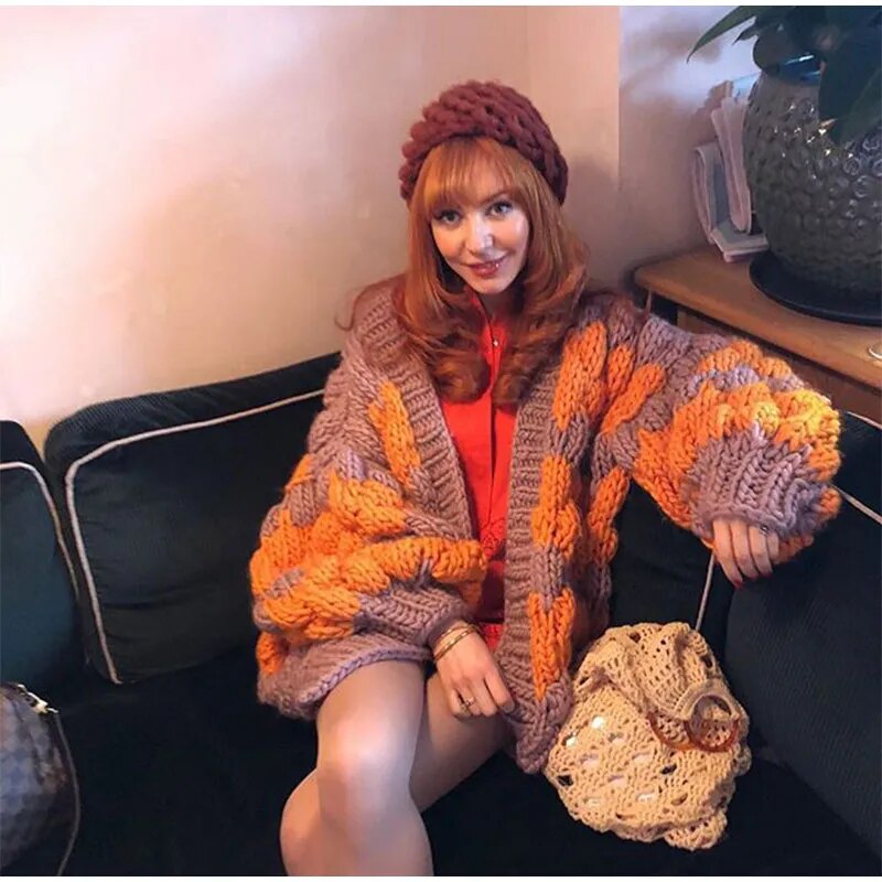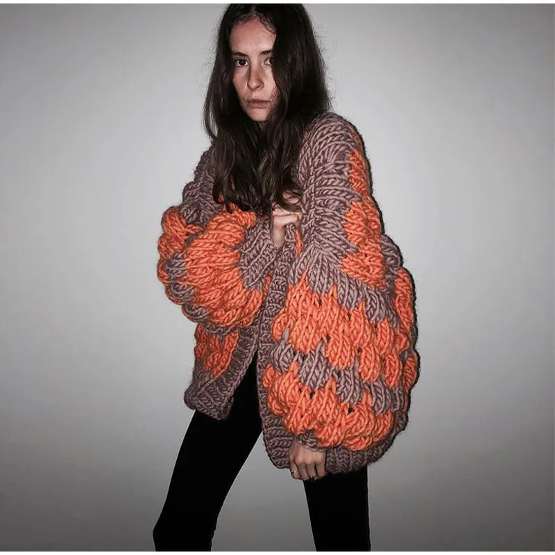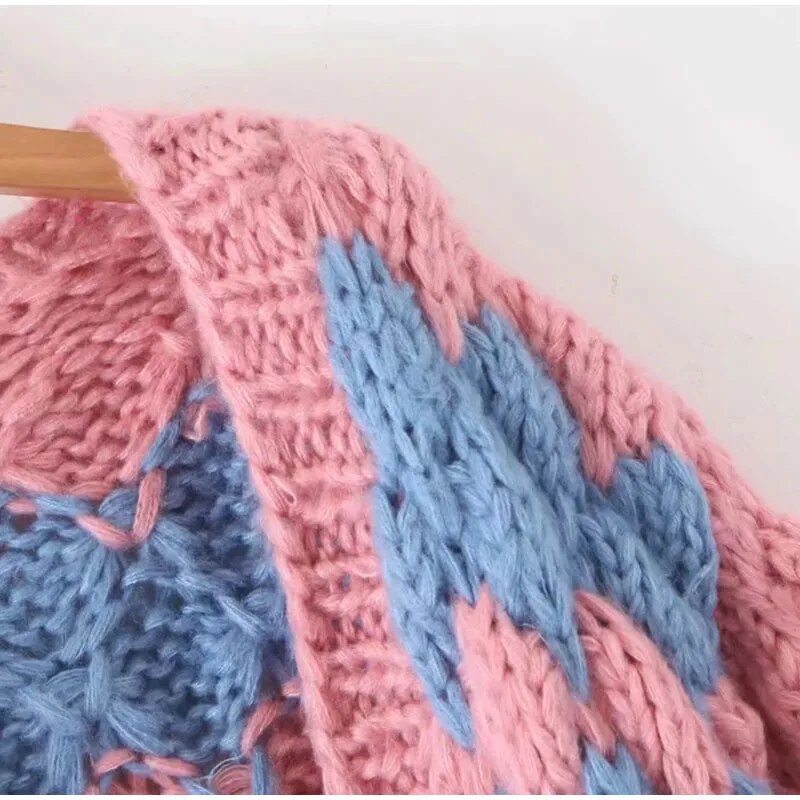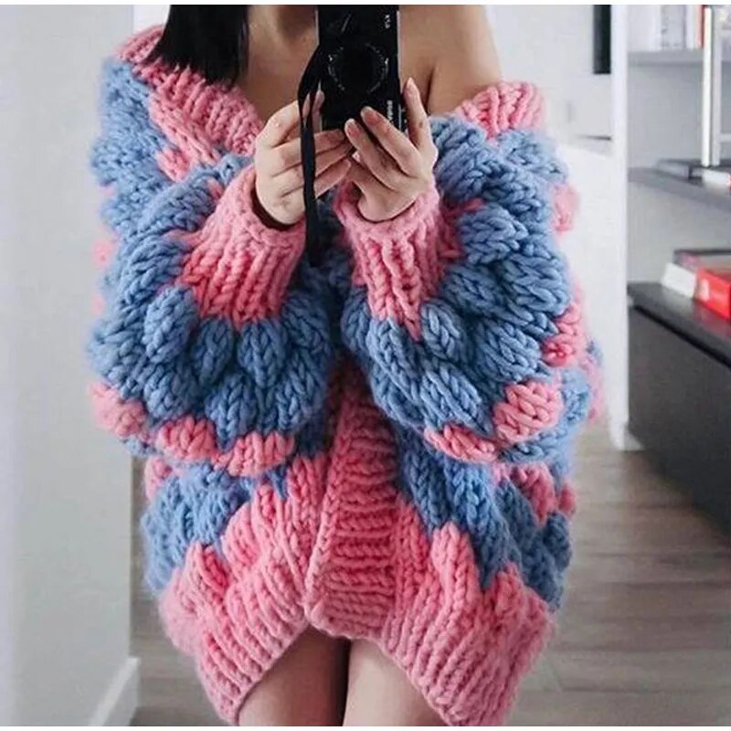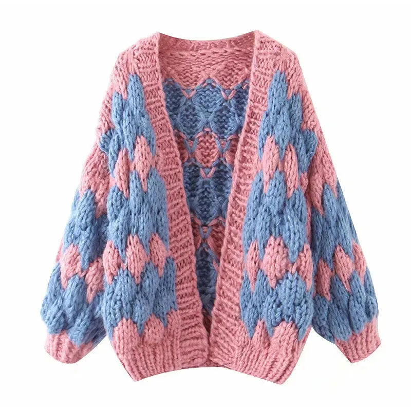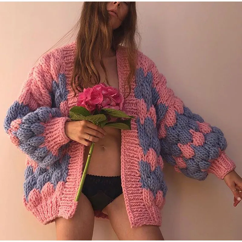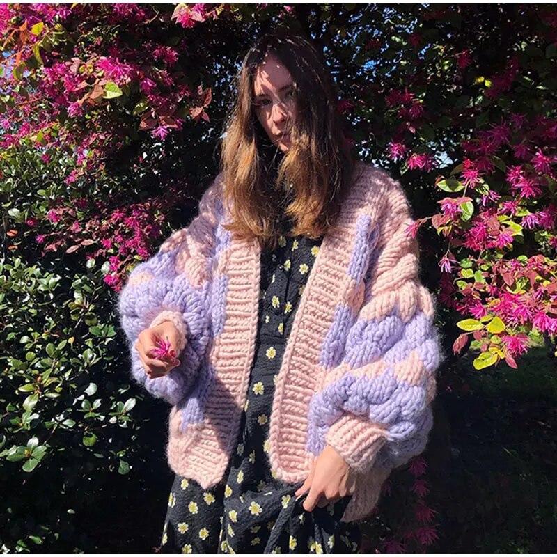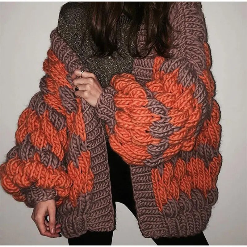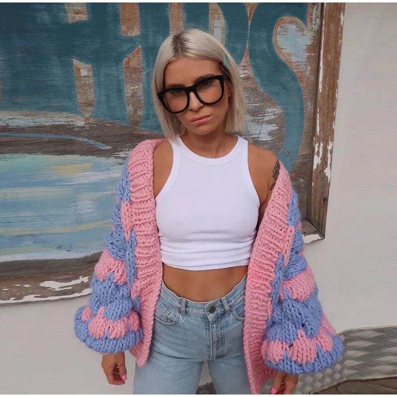 Fashion Knitted Lantern Sleeve Cropped Cardigans Coat Women Oversized Thicken Sweater Autumn Casual Vintage Streetwear Female