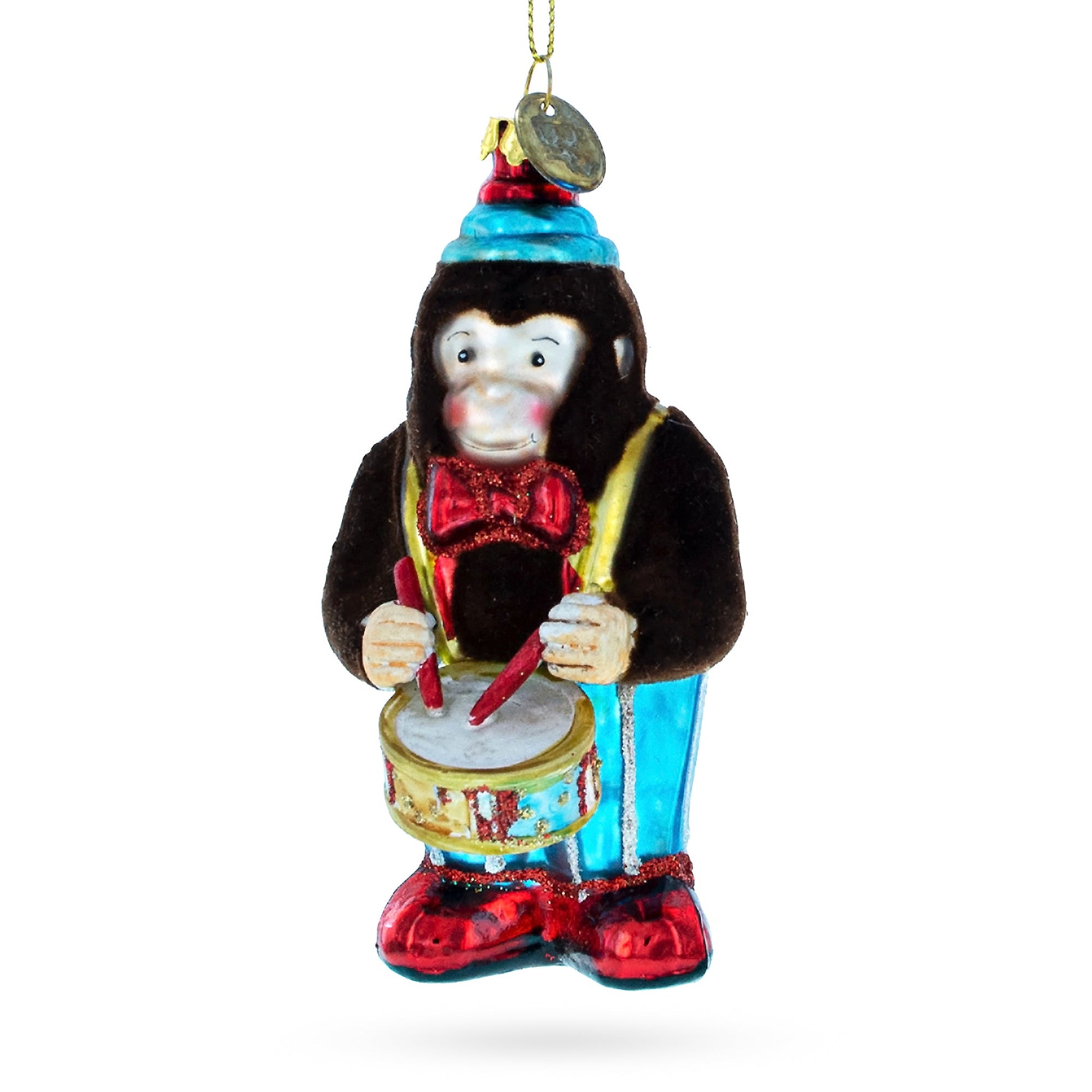 Fluffy Monkey Drumming Glass Christmas Ornament