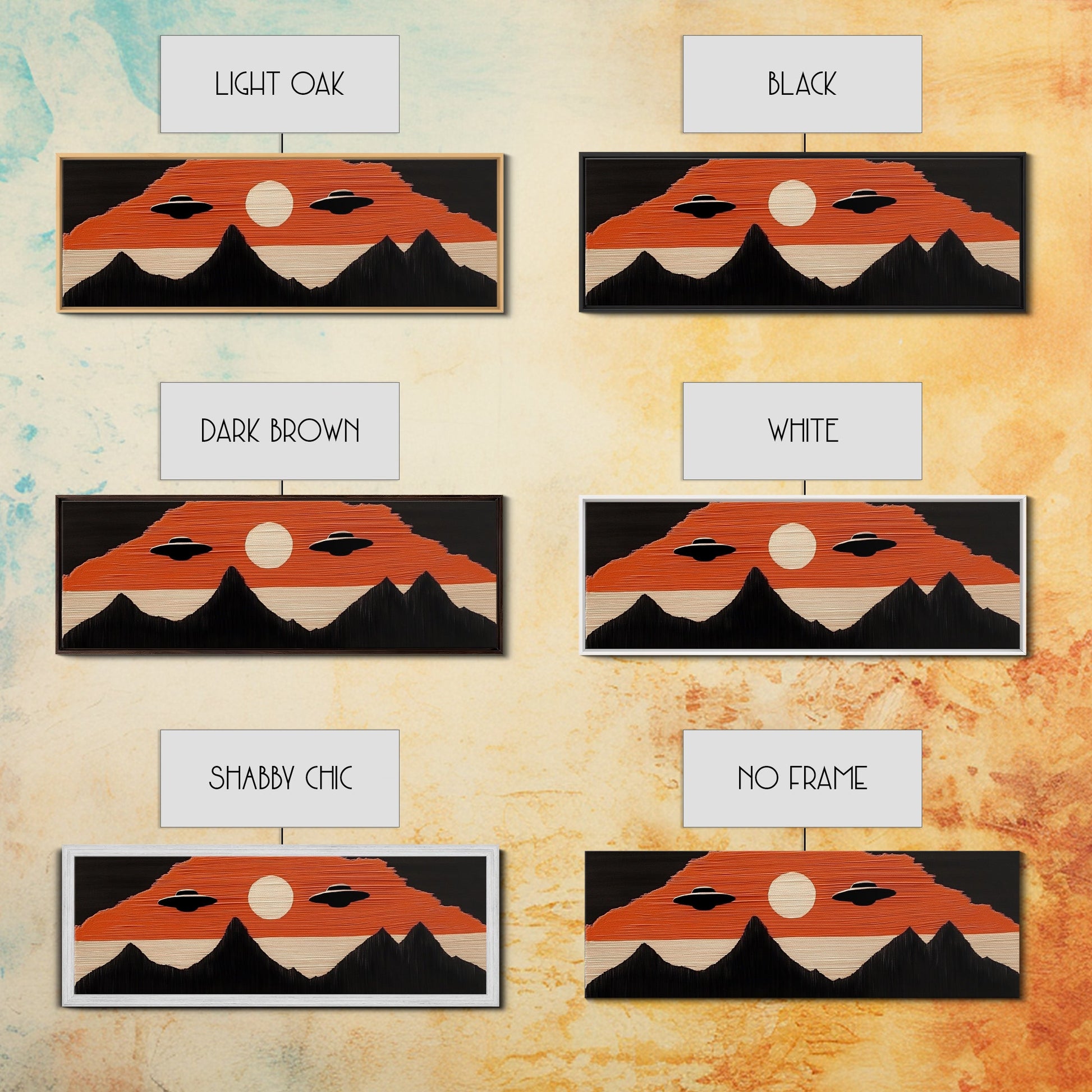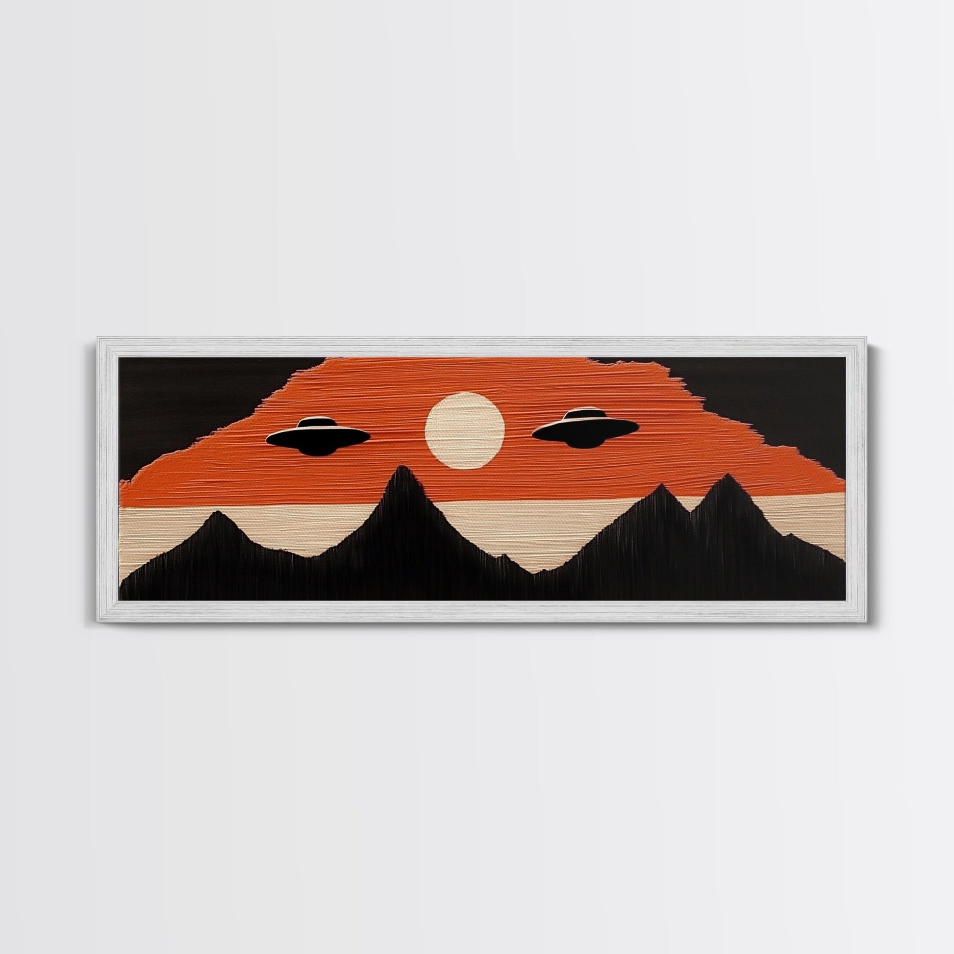 Flying Saucers over The Mountains - Retro Art Deco Inspired Scifi Art - Panoramic Print - Cute Nursery Decor