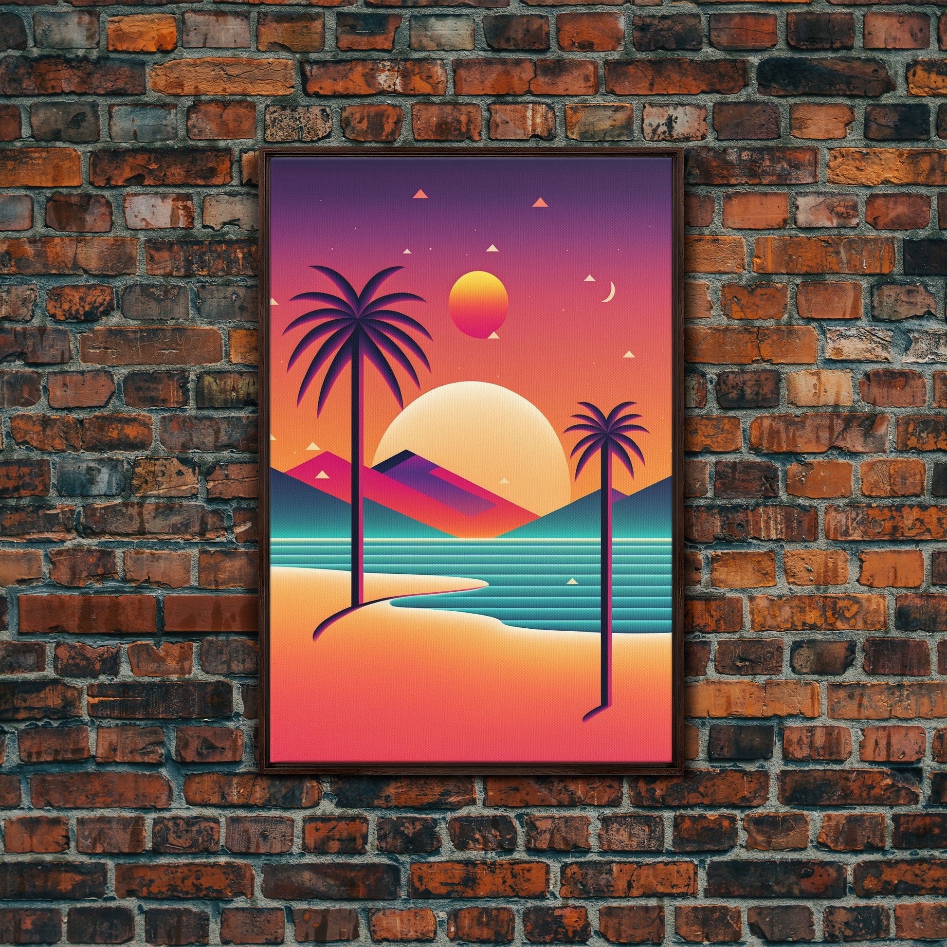 Framed Canvas Print | Art Deco Sunset | Retro Style | Palm Trees | Island Vibes | Desert Pyramids and Palm Trees | Desert Art