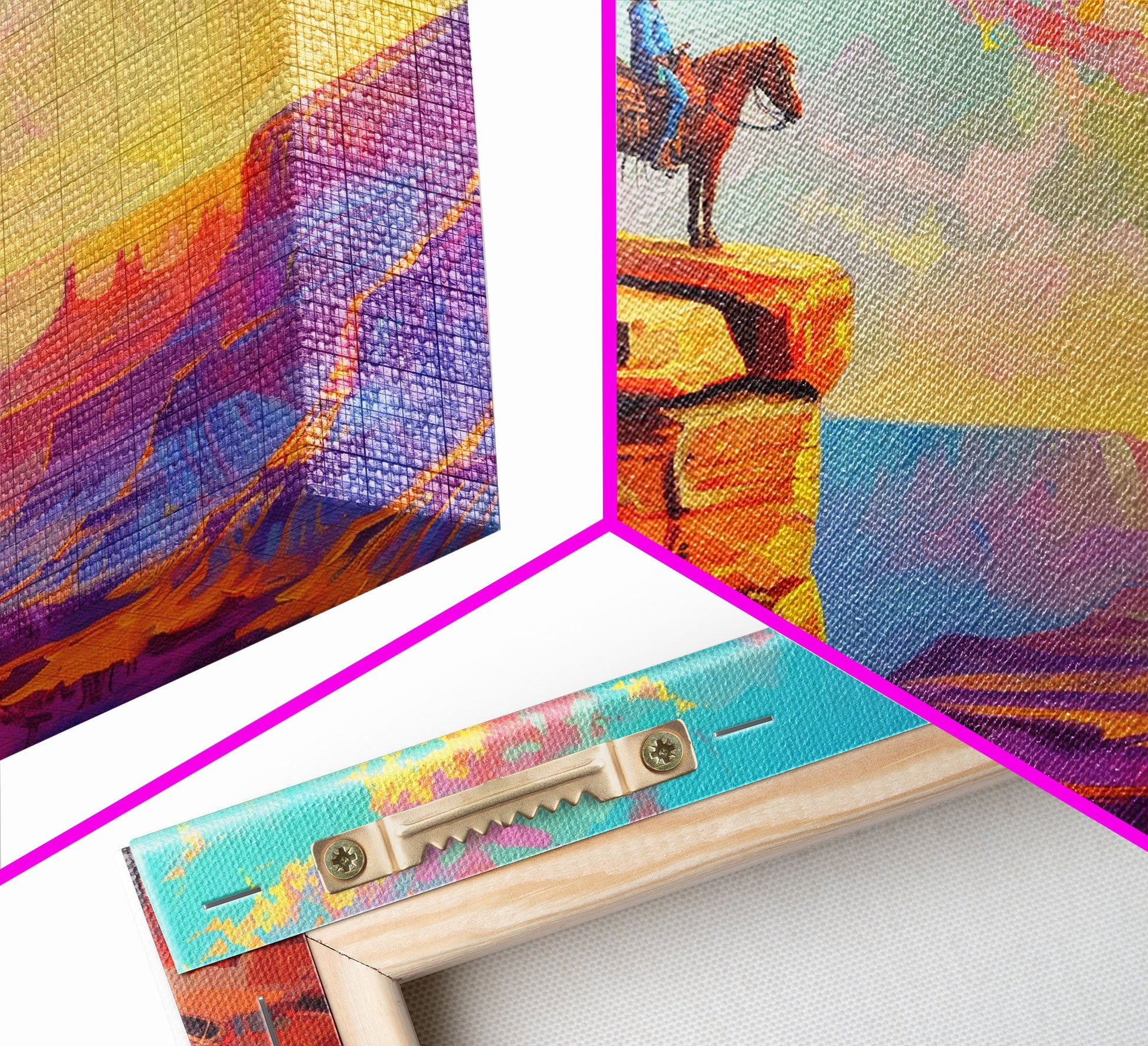 *Optional frames add a total of 1.5 inches to each dimension, for example a 10x20 canvas with a frame will be 11.5 by 21.5 inches total. All framed canvas are 1.5" total depth.