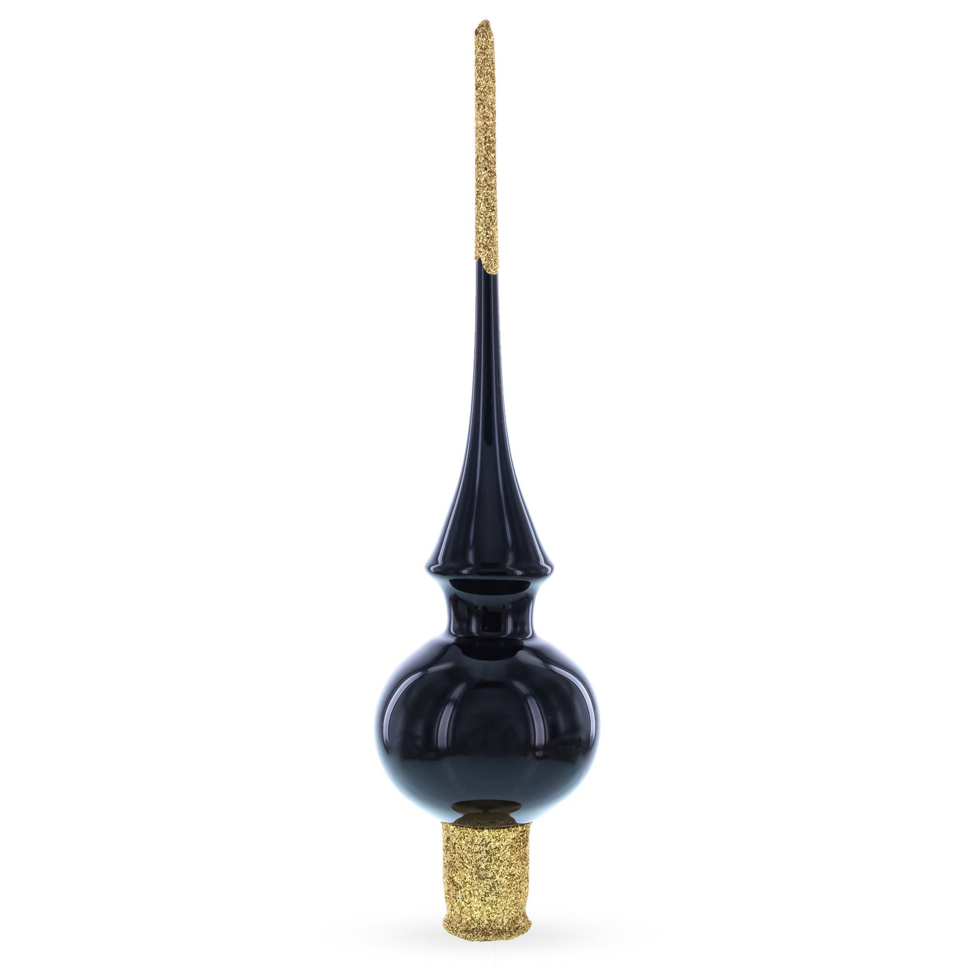 Glossy Black Glass Christmas Tree Topper 11 Inches