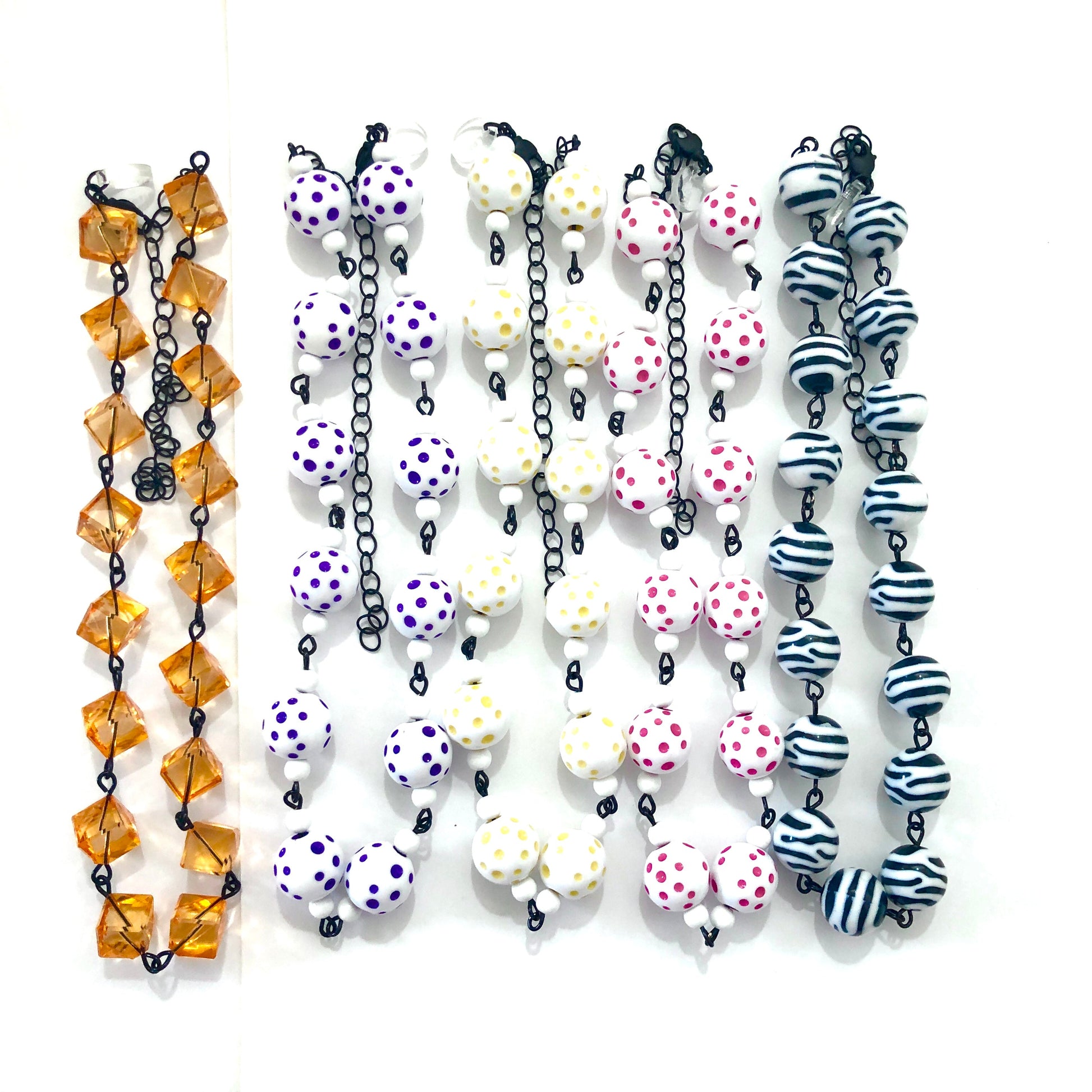 This style is known as the Amelia necklace & features hand-linked beads, rosary-chain style. Measures approximately 16" + a 6" adjustable extender. The perfect layering piece!