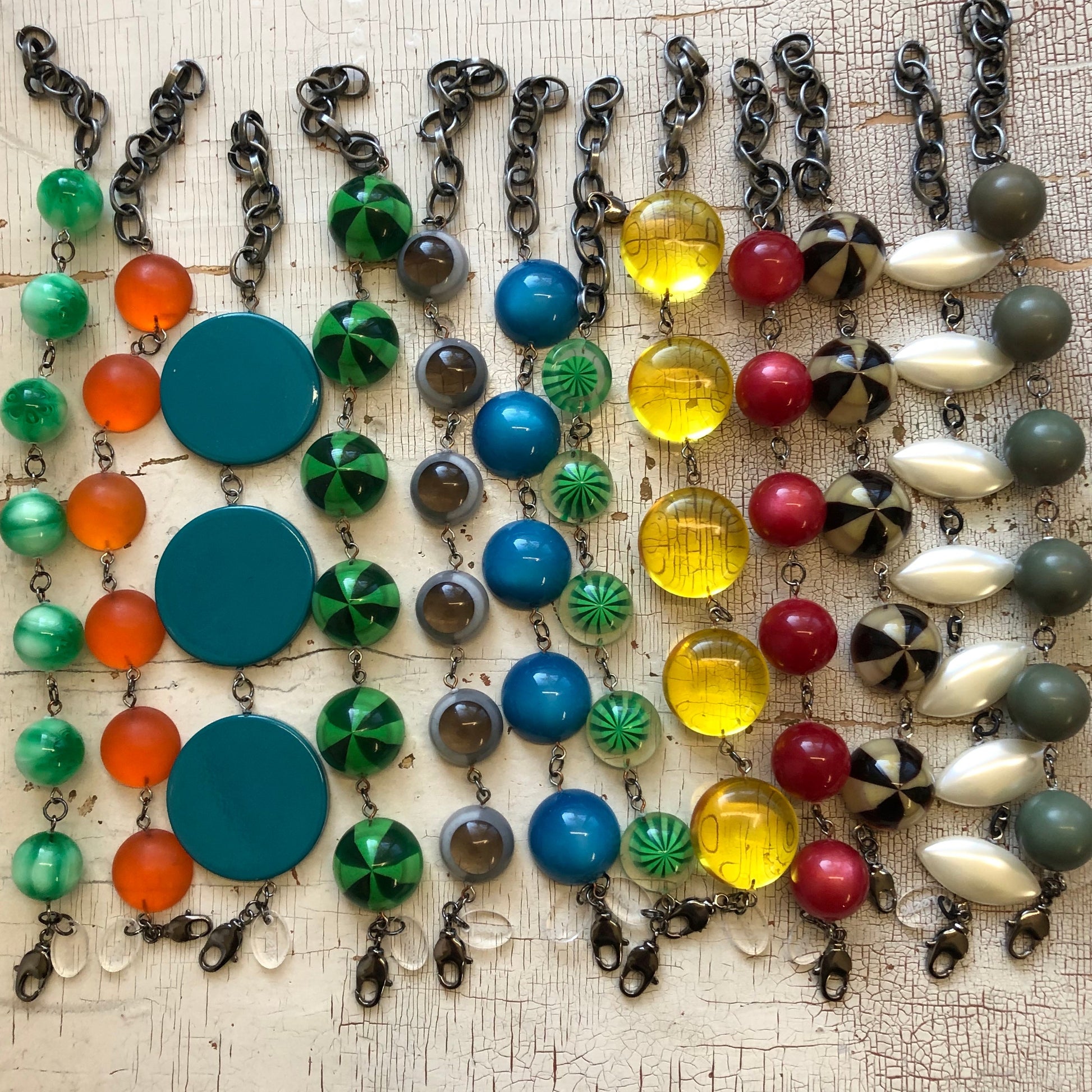 Jewelry is made with vintage lucite parts that were made in the US in the 1960's - early 80's. We hand-set them with surgical steel earring posts and they have sturdy surgical steel/acrylic backings on them as well. Light-weight & fun to wear.
