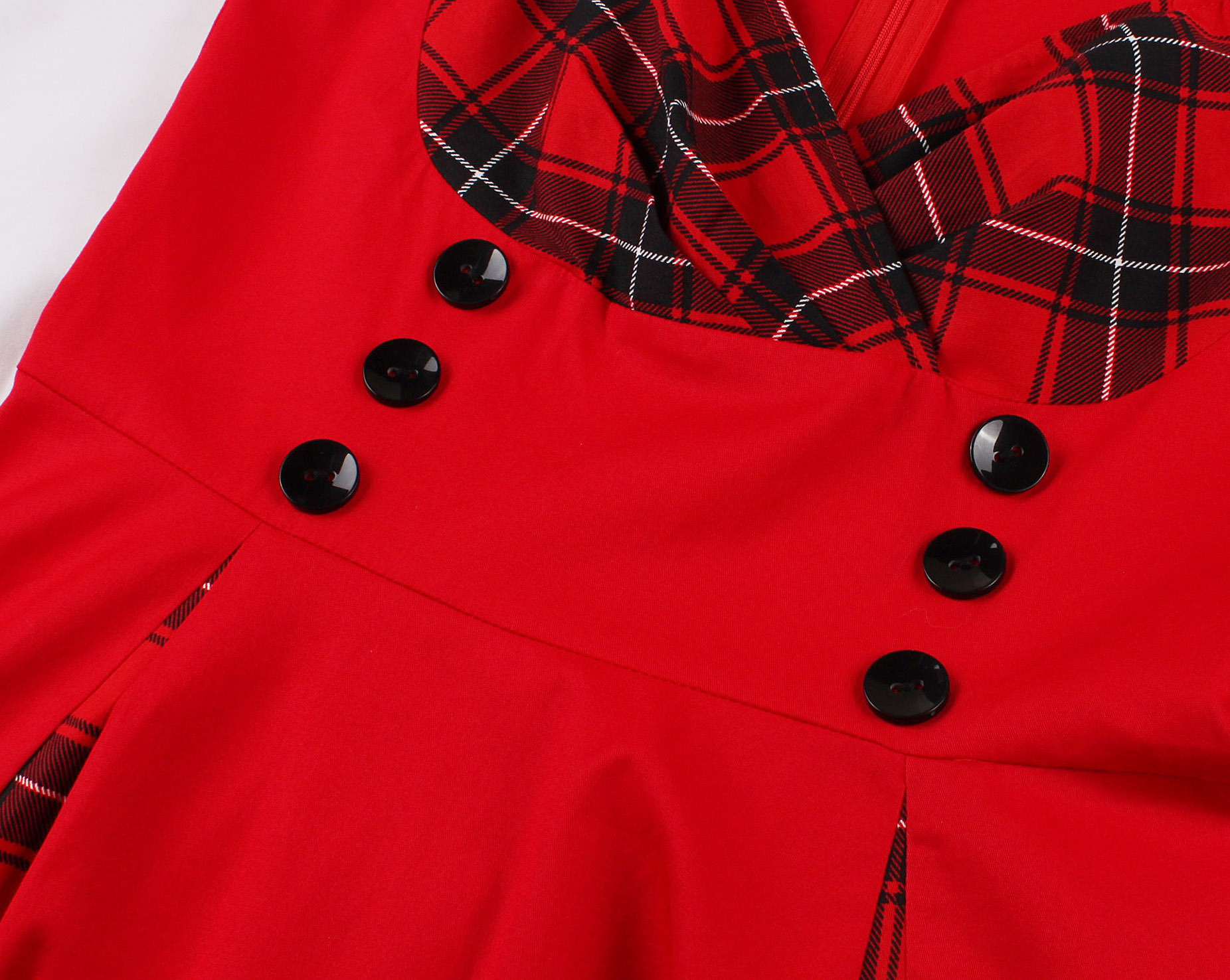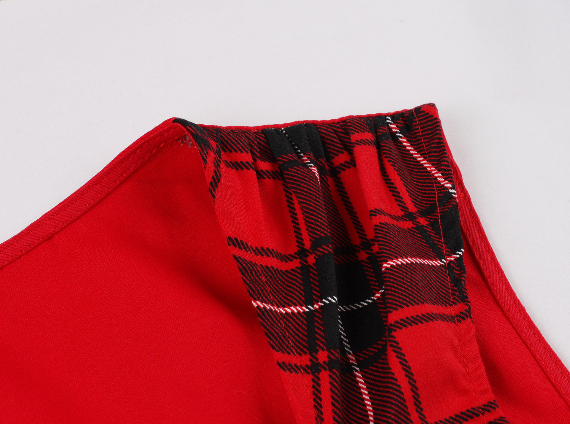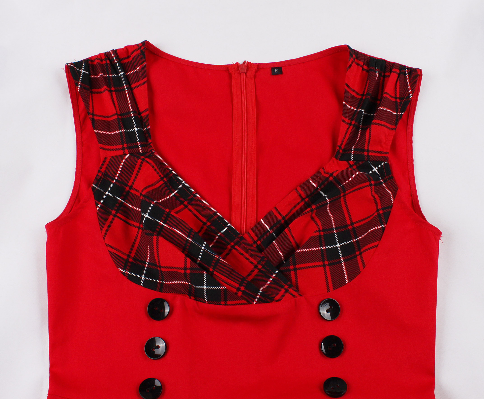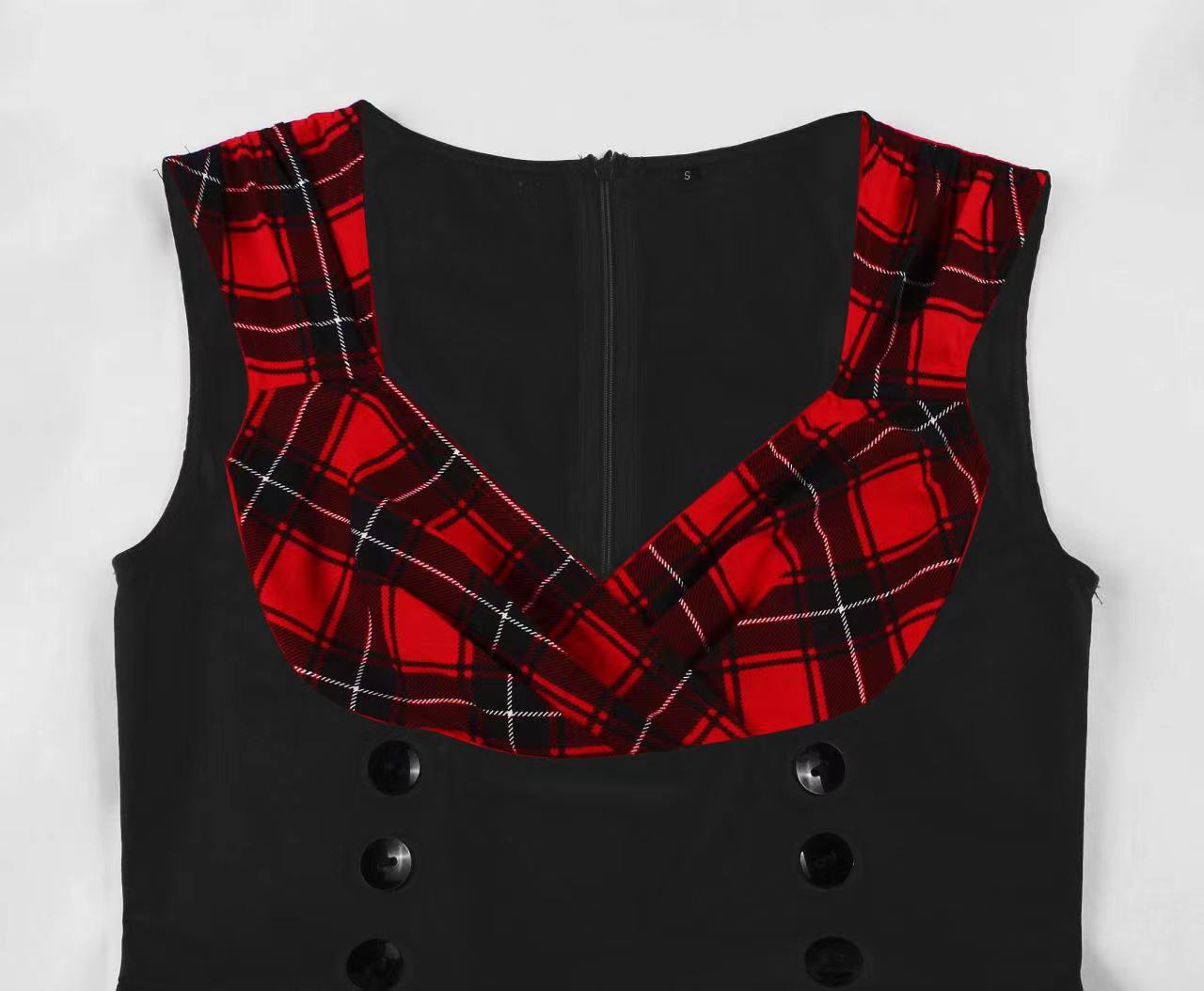 Halloween cotton double-breasted plaid printed sleeveless V-neck vintage dress