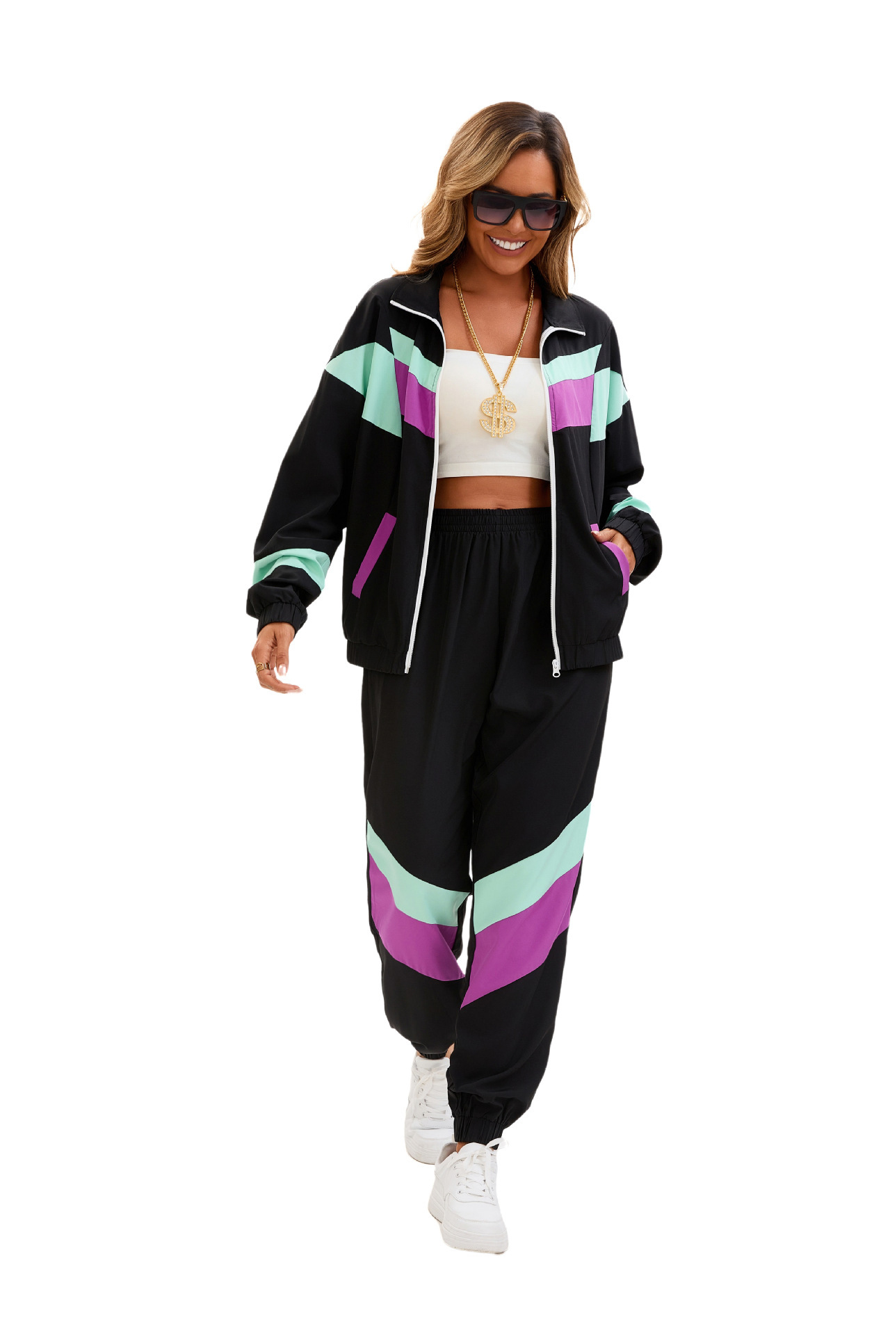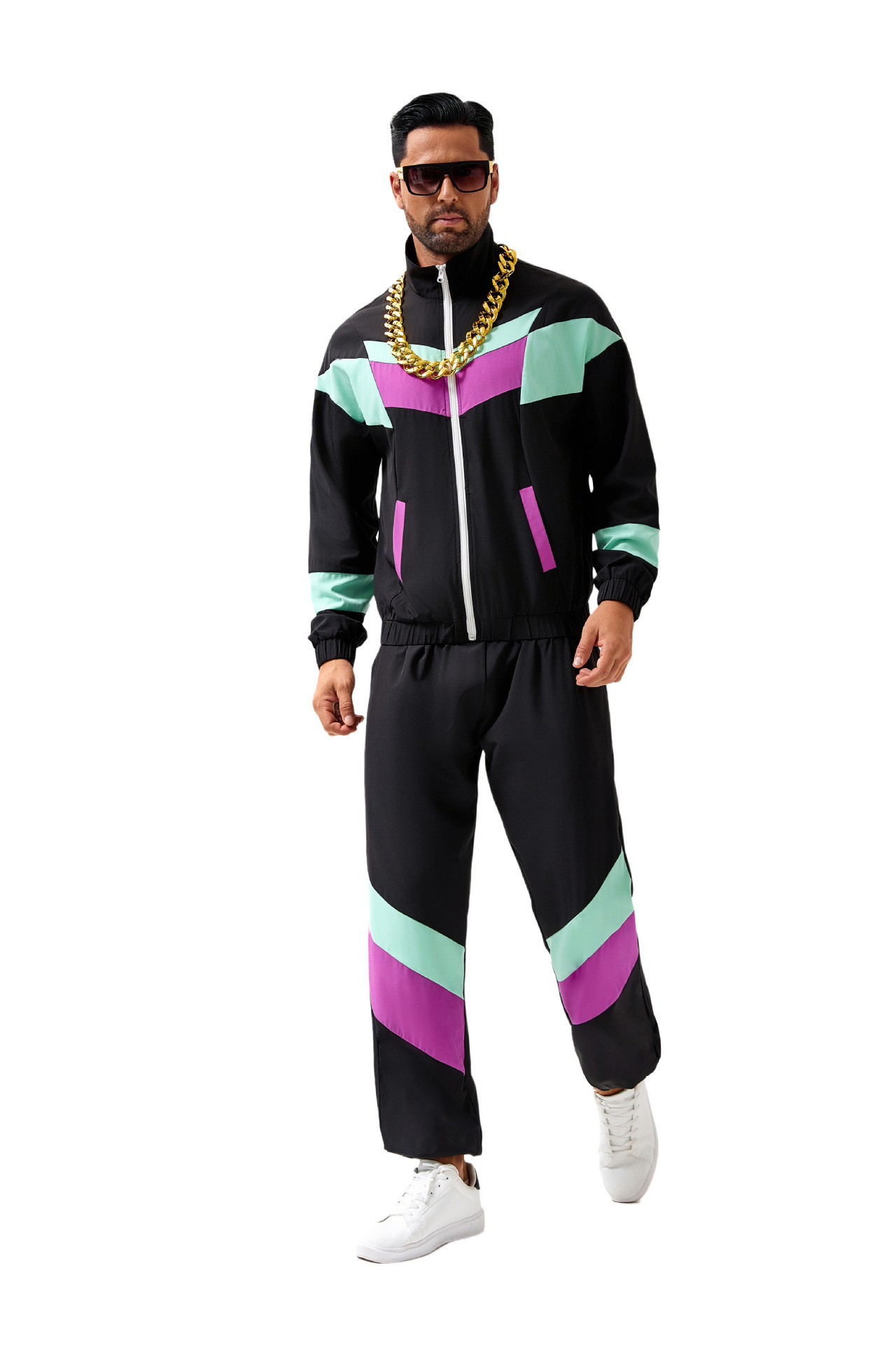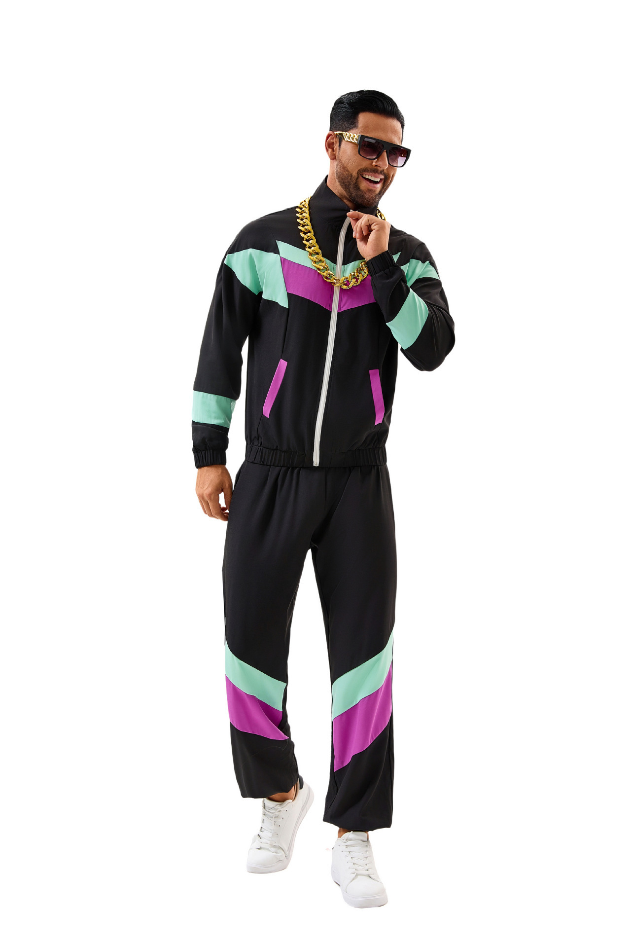 Hippie Disco Dance Costume Set 70s Retro Tracksuit Jacket and Pants for Men and Women Adult Party Wear