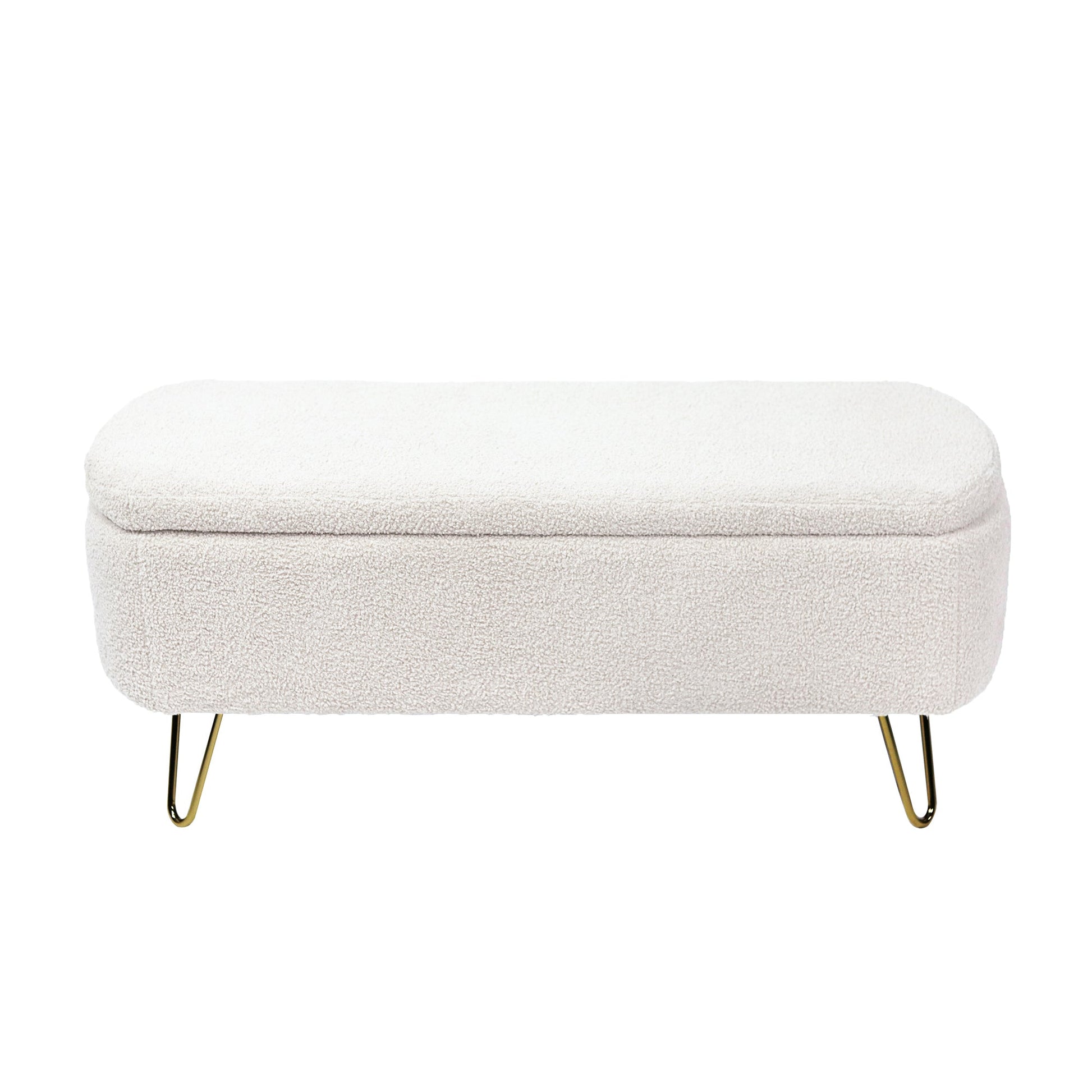 Ivory White Storage Ottoman Bench for End of Bed Gold Legs